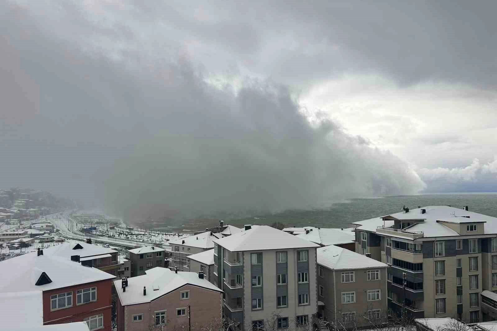 Alaplı’ya deniz üzerinden gelen yoğun kar fırtınasının görüntüsü, bir vatandaş tarafından cep telefonu kamerasıyla kaydedilirken, kısa sürede sosyal medyada yayılarak büyük ilgi gördü.