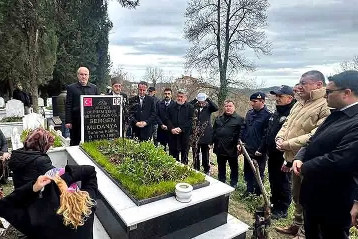 Hatay’ın İskenderun ilçesinde yıkılan apartmanın enkazında hayatını kaybeden Sergen Mudanya, afetin üçüncü yıl dönümünde Alaplı Osmanlı Köyü’ndeki mezarı başında anıldı.