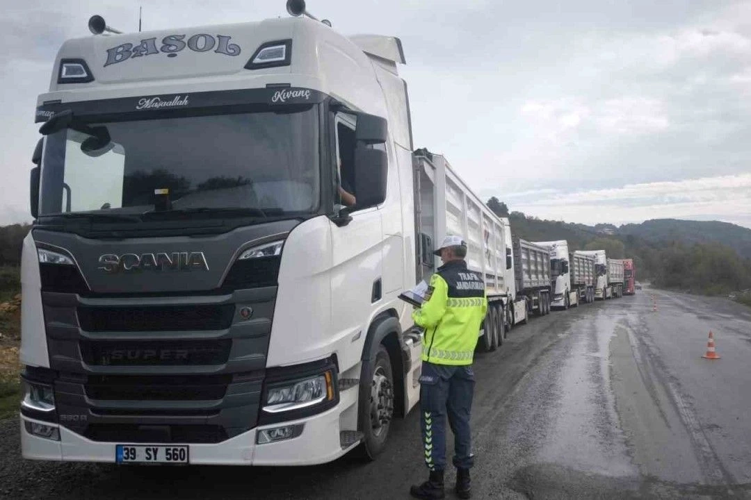 Zonguldak’ın Alaplı ilçesi girişinde tır ve kamyonlara yönelik trafik uygulaması yapıldı. Çok sayıda ağır vasıta araca ceza uygulandı.