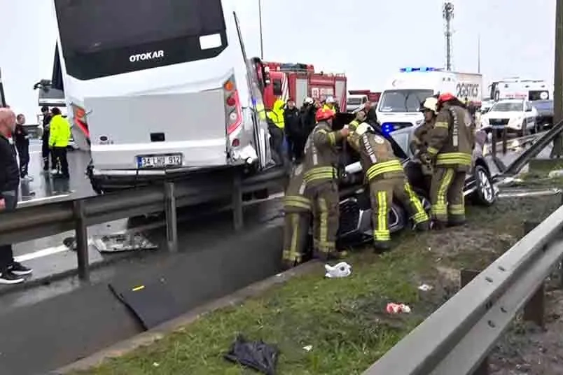 Kuzey Marmara Otoyolu’nda polis servis minibüsünün karıştığı kazada 1 polis memuru şehit oldu, 16 polis memuru yaralandı. Edinilen bilgilere göre, olay, sabah saatlerinde Kuzey Marmara Otoyolu Başakşehir - Habipler bağlantı yolunda yaşandı. Yağmur nedeniyle kayganlaşan yolda 34 LHU 912 plakalı polisleri taşıyan servis minibüsü ve EYG 499 plakalı otomobil kazaya karıştı. Polis minibüsü bariyerlere çarparak dururken, otomobil ise orta refüje uçtu. Kazada serviste bulunan 1 polis memuru şehit oldu, 16 polis memuru ise yaralandı. İhbar üzerine olay yerine çok sayıda sağlık ekibi, itfaiye ve polis sevk edildi. Yaralılar sağlık ekiplerinin müdahalesiyle çevre hastanelere kaldırıldı. Olayla ilgili inceleme başlatıldı. İstanbul Valiliği'nden açıklama İstanbul Valiliği'nden kazaya ilişkin yapılan açıklamada, "30.03.2026 Pazartesi günü saat 09.00 sıralarında polis memurlarını taşıyan servis aracı, Kuzey Marmara Otoyolu Başakşehir - Habipler bağlantı noktasında bariyerlere çarpmıştır. Kazada ilk belirlemelere göre 1 polis memurumuz şehit olmuş, 1’i ağır 16 polis memurumuz ise yaralanmıştır. Yaralı polis memurlarımız çevredeki hastanelere kaldırılarak tedavi altına alınmıştır" denildi.