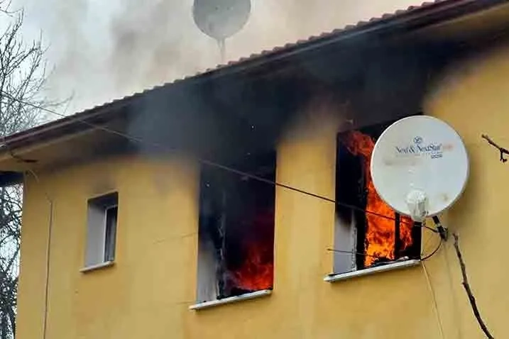 Kumluca beldesi Akörensöküller köyü Düzyer Mahallesi’ndeki 2 katlı afet konutlarının üst katında oturan Kezban Özkaynak, sobayı tutuşturduktan sonra zihinsel engelli torunu Özkan ve komşusuna gitti. Evden yükselen dumanları fark eden çevre sakinleri, durumu itfaiye ekiplerine bildirdi.