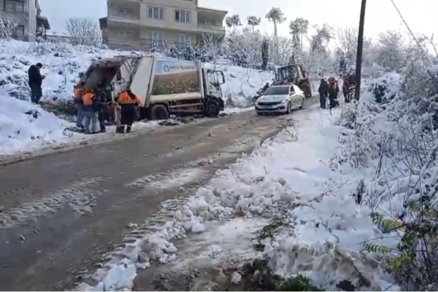 Bartın'da yoğun kar yağışı ve buzlanmaya karşı yapılan uyarıların sürdüğü sabah saatlerinde, Ağdacı Mahallesi'nde belediyeye ait çöp kamyonu kontrolden çıkarak geriye doğru kaydı. Kamyonun arkasındaki belediye işçisi, kayarak toprak zemine çarpan araç ile toprak zemin arasında sıkıştı. İhbar üzerine olay yerine sağlık, itfaiye, polis ekipleri ile belediyeye ait iş makineleri sevk edildi. Kamyon ile toprak zemin arasında sıkışan 45 yaşındaki belediye işçisi Gökhan Akgün, ekiplerin çalışması sonucu bulunduğu yerden kurtarıldı. Yapılan ilk kontrollerde bacağından yaralandığı belirlenen Akgün, sağlık ekiplerinin olay yerindeki ilk müdahalesinin ardından Bartın Devlet Hastanesi'ne kaldırılarak tedavi altına alındı. Polis ekipleri, kazayla ilgili inceleme başlattı.