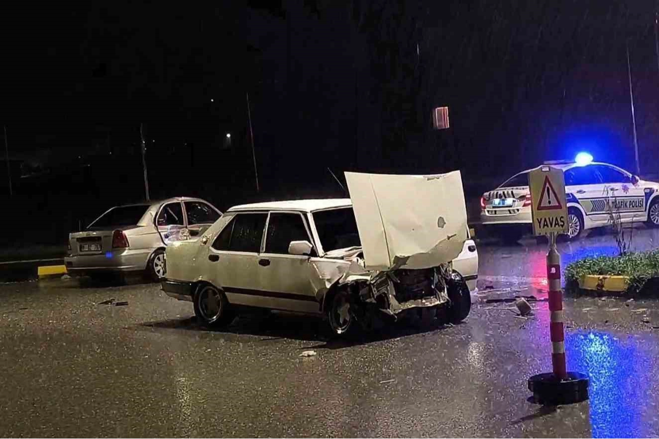 Öte yandan seyir halinde bulunan otomobil sürücüsünün yağış nedeniyle kaygan yolda, duramaması sonucu kavşaktan çıkan otomobile çarptığı ileri sürüldü.