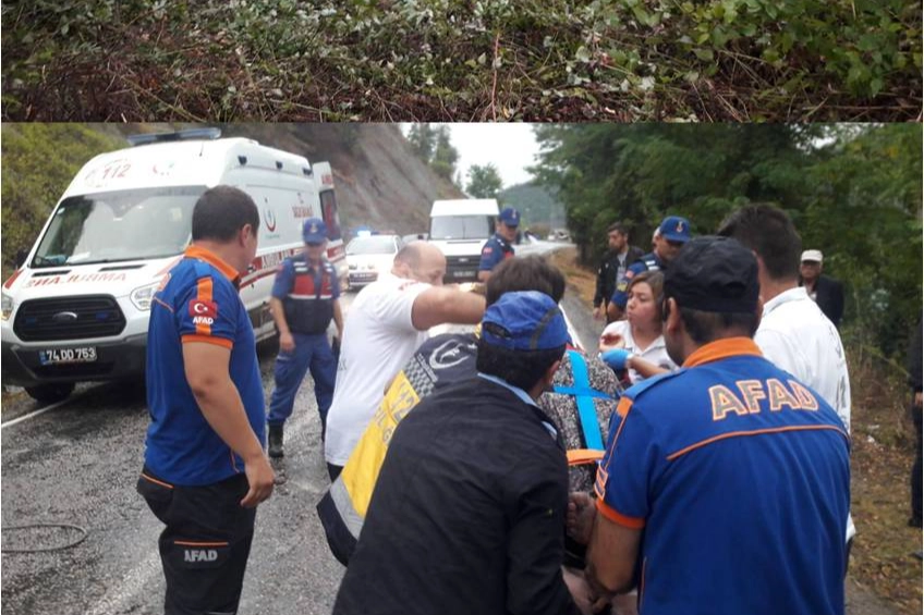 Otomobilin içindeki yaralılar yaklaşık 40 metrelik şarampolden AFAD ve 112 ekiplerinin çalışmasıyla çıkarıldı.