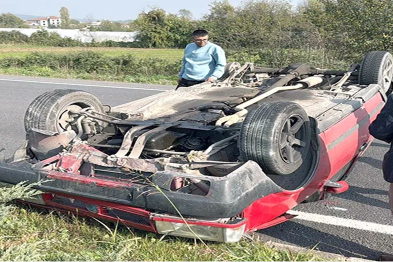 Zonguldak'ın Çaycuma ilçesinde meydana gelen ilginç trafik kazasında, bir otomobil düz yolda kontrolden çıkarak takla attı. Şans eseri sürücü kazayı hafif sıyrıklarla atlattı.