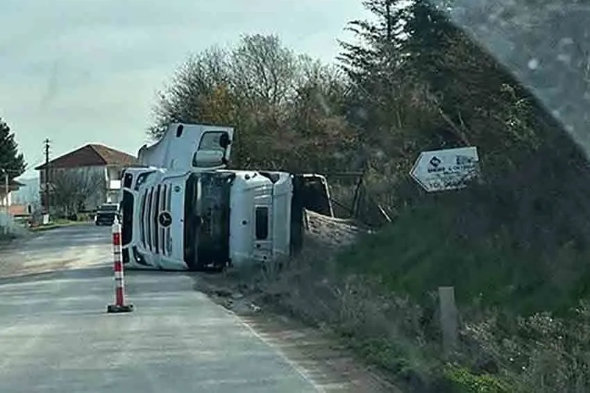 Zonguldak’ın Çaycuma ilçesine bağlı Çömlekçi köyünde kontrolden çıkan tırın devrilmesi sonucu sürücü yaralandı, kara yolu bir süre trafiğe kapandı.