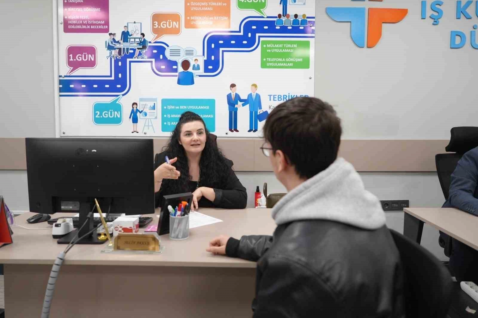 İş Kulübü Sorumlusu Dilale Seyyar, "İşin Özü İnsan" sloganıyla yola çıktıklarını belirterek, özellikle kadınlar, gençler, engelliler ve uzun süredir işsiz olan vatandaşlara rehberlik ederek onların aktif iş gücüne katılmalarına imkan sağladıklarını kaydetti.