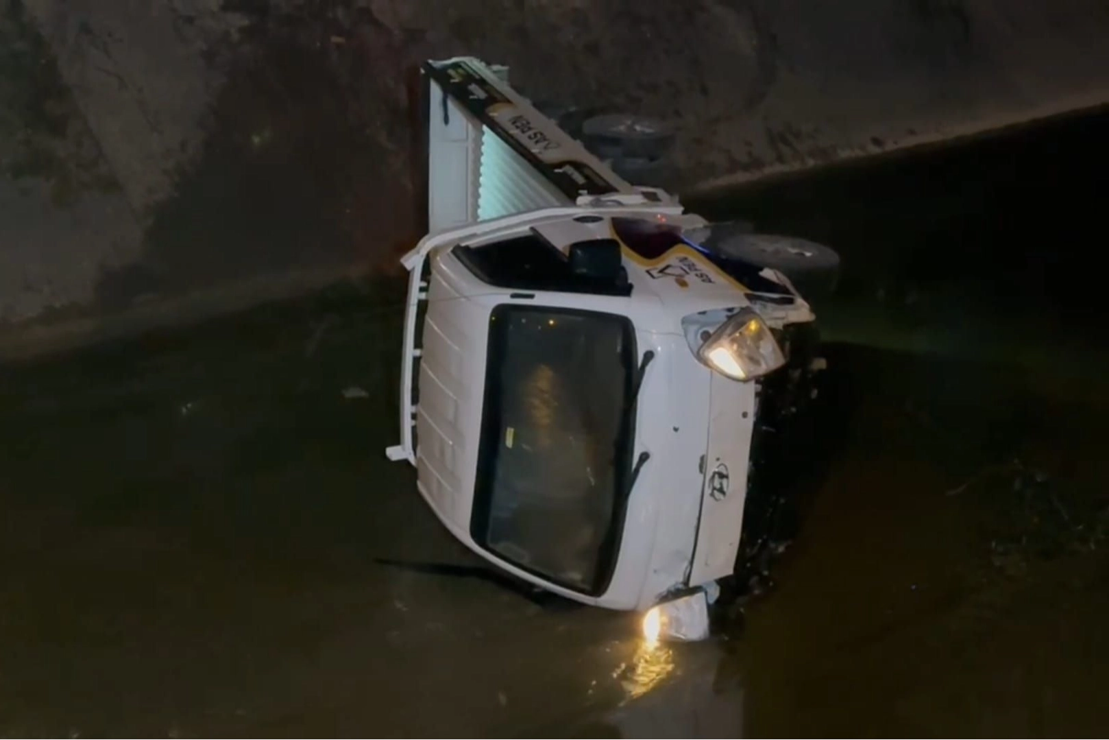 DÜZCE'de sulama kanalına devrilen kamyonetin alkollü sürücüsü Alihan A. hafif yaralandı.