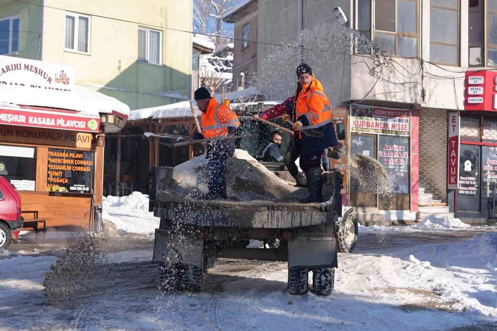 Karla mücadele çalışmalarının yanı sıra çöp toplama gibi temel hizmetler ve ihtiyaç sahiplerine yönelik sıcak yemek dağıtımı da aksatmadan sürdürüldü.