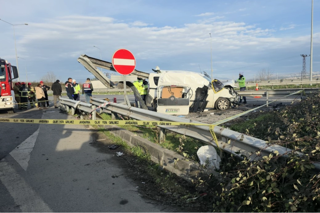TEM Otoyolu’nun Düzce geçişinde bariyerlere ok gibi saplanan hafif ticari araçtaki 2 kişi olay yerinde hayatını kaybetti.