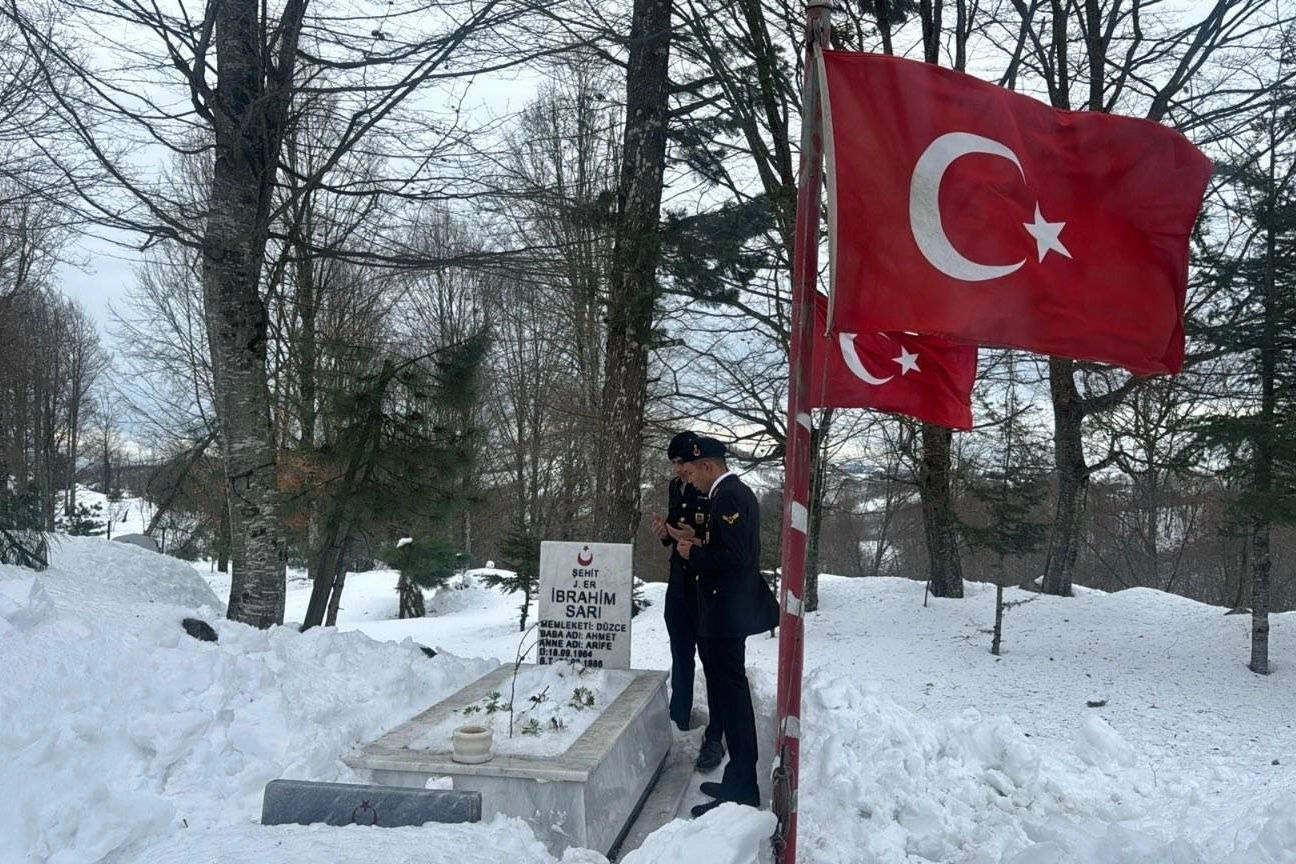 Düzce İl Jandarma Komutanlığı personeli, şehadetlerinin yıl dönümü dolayısıyla şehit erler Hüseyin Dikmen ve İbrahim Sarı’nın kabirlerini ziyaret etti.