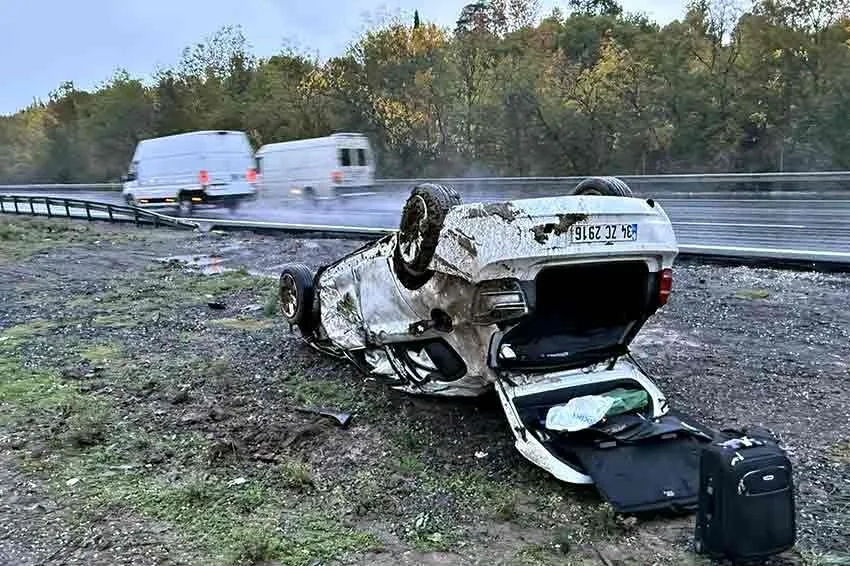 Anadolu Otoyolu Sakarya geçişinde sürücüsünün kontrolünden çıkan otomobil takla atarak hurdaya döndü. Refüjü aşarak ters dönen otomobilin sürücüsü yaralandı.