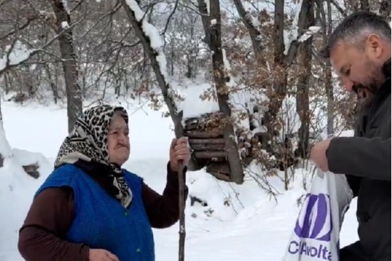 Başkan Cıva, daha sonra gurbetçinin annesine gönderilen poşeti teslim etti.