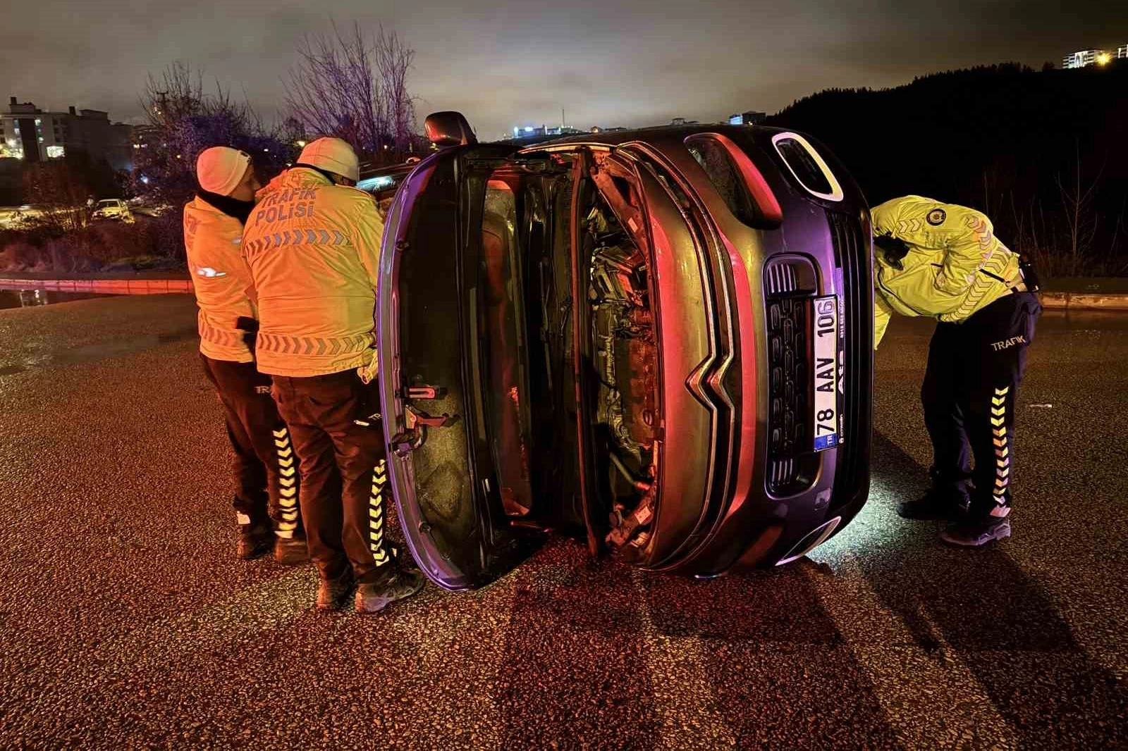 Kontrolden çıkan araç, kaldırıma çarptıktan sonra yaklaşık 50 metre ilerleyerek devrildi. Kazada araçta yolcu olarak bulunan Ezgi Ç. yaralandı.