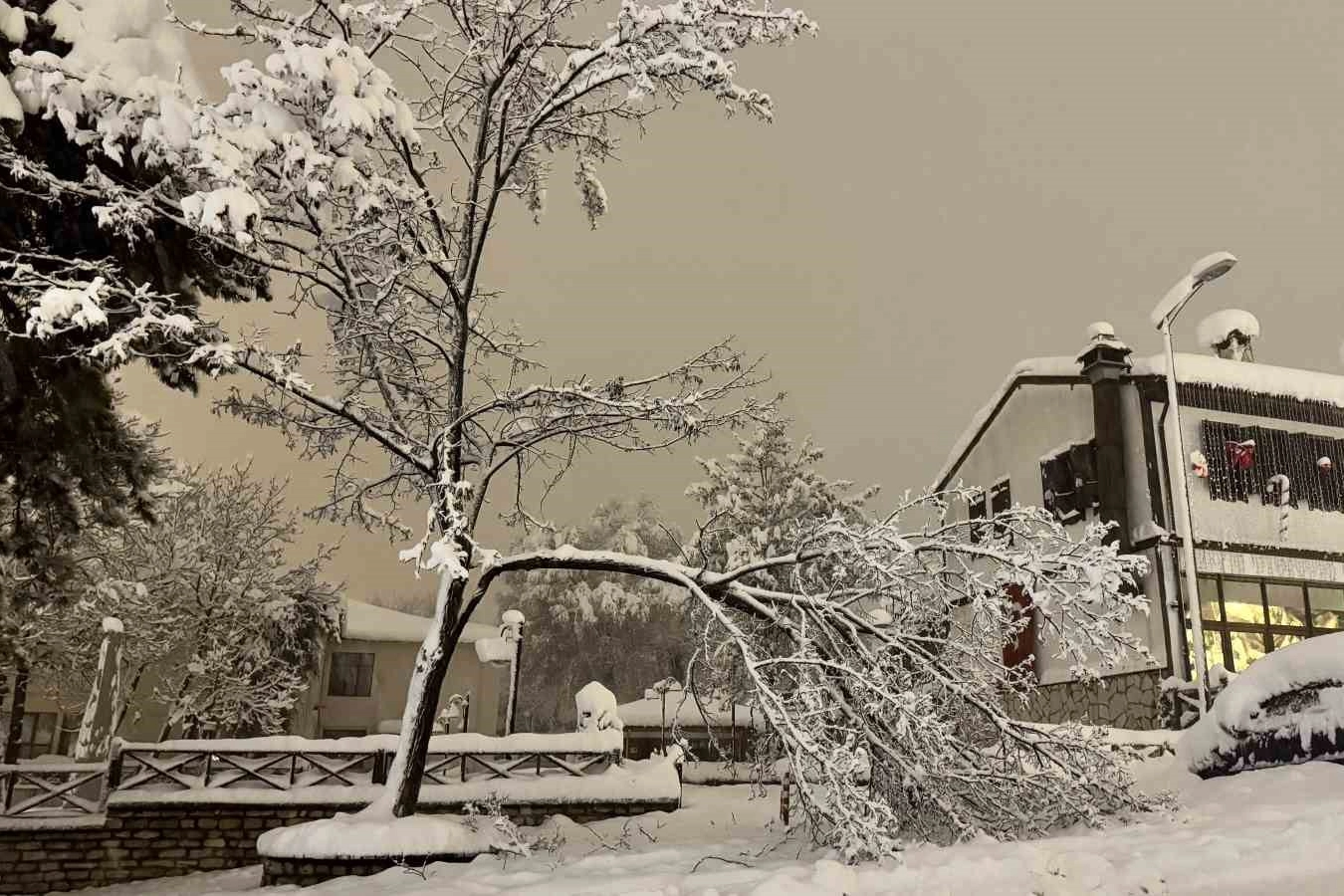 Karabük’ün Safranbolu ilçesinde etkisini sürdüren kar yağışı nedeniyle birçok noktada karın ağırlığına dayanamayan ağaçların dalları kırıldı