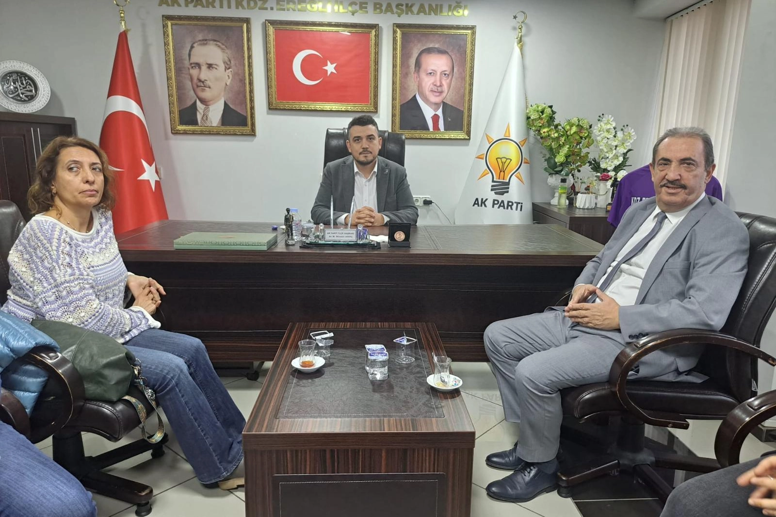 Kdz.Ereğli Gazeteciler Derneği Başkanı Şafak Erel ve beraberindeki yönetim ve denetim kurulu üyeleri AK Parti Kdz.Ereğli İlçe Başkanı Mücahit Andiç’e ziyarette bulundu. Bazı Kdz.Ereğli Belediye ve parti yöneticileriyle birlikte Ereğli Gazeteciler Derneği Başkanı Şafak Erel ve ekibini birlikte karşılayan AK Parti Kdz.Ereğli İlçe Başkanı Mücahit Andiç, ziyaretten duyduğu memnuniyeti dile getirdi. İlçe trafiği ve Özel Halk Otobüsleri başta olmak üzere Kdz.Ereğli’nin birçok sorunlarının da görüşüldüğü ziyarette Başkan Andiç, Kent Meydanı ile önümüzdeki günlerde önemli gelişmelerin yaşanacağını söyledi. EGD Başkanı Şafak Erel’de yaptığı konuşmada Kdz.Ereğli’nin, ilçe halkının menfaati için verilen/verilecek çalışmalara her zaman destekte bulunacaklarını belirtti.