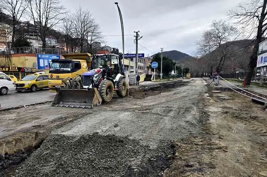 Zonguldak Belediyesi tarafından İstasyon Caddesi’nde geçtiğimiz pazar günü başlatılan yol bakım ve onarım çalışmalarında yolda kazıma işlemi sürüyor.