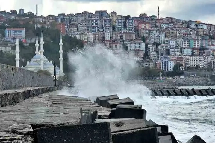 Zonguldak'ta şiddetli rüzgar ve kuvvetli yağışın etkisiyle Liman Caddesi'nde dalga boyları zaman zaman 7 metreyi aştı. Fırtına nedeniyle bazı balıkçı tekneleri limana demirlerken, sahil bandına vuran dev dalgalar büyük tehlike oluşturdu.