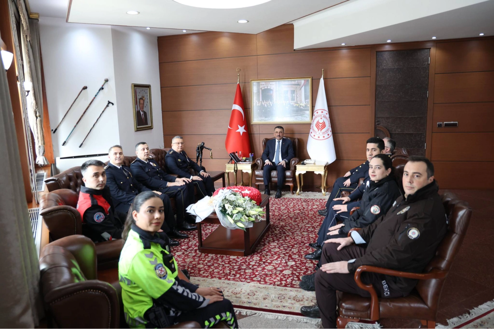 Zonguldak Valisi Osman Hacıbektaşoğlu, Polis Teşkilatı’nın 181. kuruluş yıldönümü dolayısıyla İl Emniyet Müdürü Sinan Ergen ve beraberindeki emniyet mensuplarını makamında kabul etti.