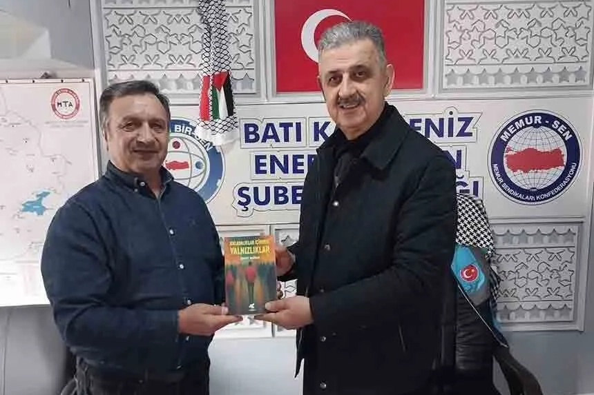 Sedat Güngör başkanlığındaki Enerji Bir-Sen Batı Karadeniz Şubesi, anlamlı bir ziyarete ev sahipliği yaptı. Sendikanın eski genel başkan yardımcılarından Zahid Borak, şubeyi ziyaret ederek hem hasret giderdi hem de yazarlık yolculuğuna dair özel bir hatıra paylaştı. Enerji Bir-Sen Batı Karadeniz Şube Başkanı Sedat Güngör, Zahid Borak’ı ağırlamaktan büyük memnuniyet duyduklarını belirterek, “Hoş geldiler, sefa getirdiler” ifadelerini kullandı. Yazar kimliğiyle de tanınan Zahid Borak, kaleme aldığı Kalabalıklar İçindeki Yalnızlıklar adlı kitabını Sedat Güngör’e hediye etti. Güngör, nazik hediyeden dolayı Borak’a teşekkür etti.
