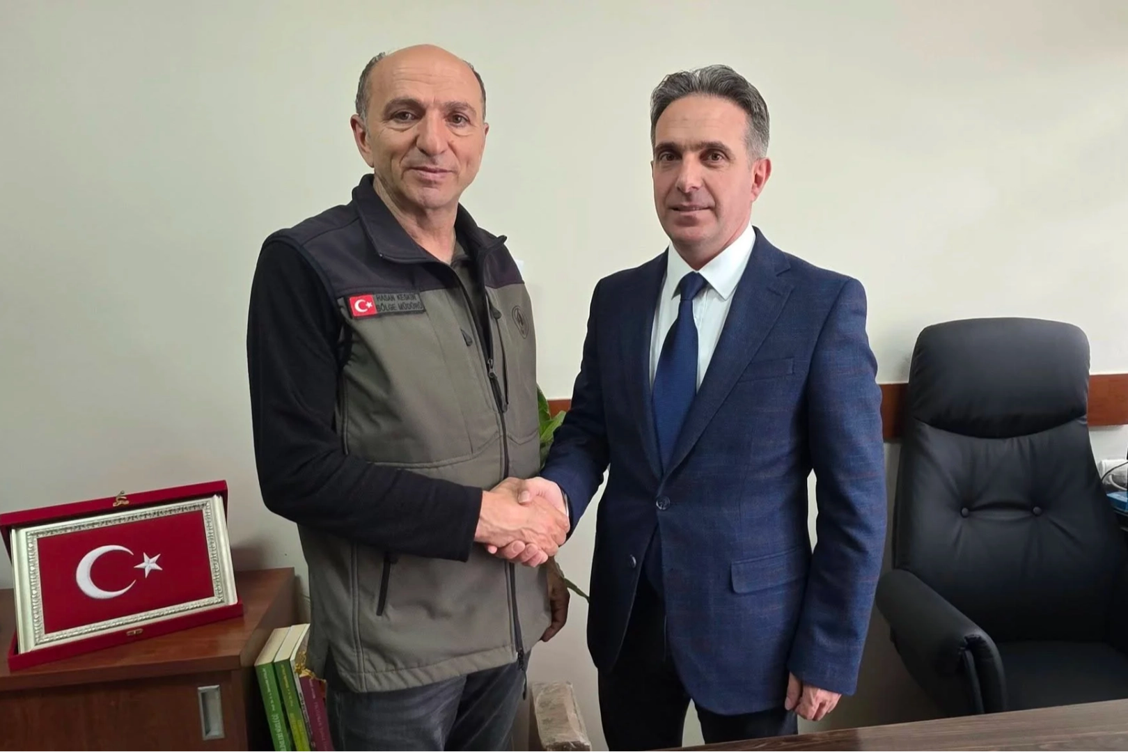 Zonguldak Orman Bölge Müdürü Hasan Keskin, Kadastro ve Mülkiyet Şube Müdürü Hüseyin Beytekin’i makamında ziyaret ederek yeni görevinde başarılar diledi.
