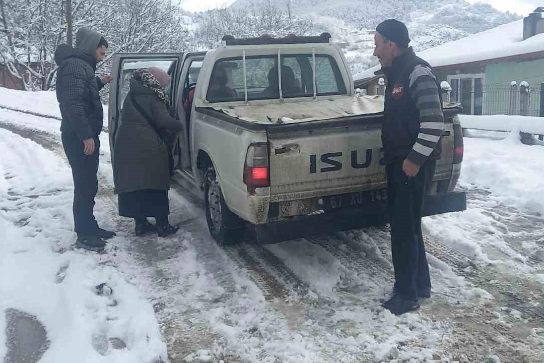 Devrek, Mahmutoğlu Köyü'nde yaşayan 77 yaşındaki kanser hastası Zeliha Karagöz, aniden rahatsızlandı. Ambulansın kar nedeniyle ulaşamadığı köye köy hizmetleri ekipleri giderek, Karagöz'ü hastaneye ulaştırdı ve tedavi altına almasını sağladı.