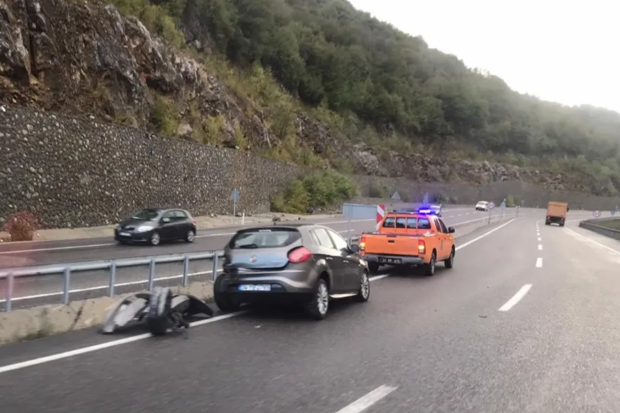 Zonguldak-Ankara karayolu Sapça Tüneli çıkışında sürücüsünün kontrolünden çıkan otomobil bariyerlere çarptı. Edinilen bilgilere göre, Zonguldak-Ankara karayolu Sapça Tüneli çıkışında sürücüsünün direksiyon hakimiyetini kaybettiği otomobil bariyerlere çarptı. Çarpmanın şiddetiyle ön lastiği kopan araçta şans eseri yaralanan olmadı.
