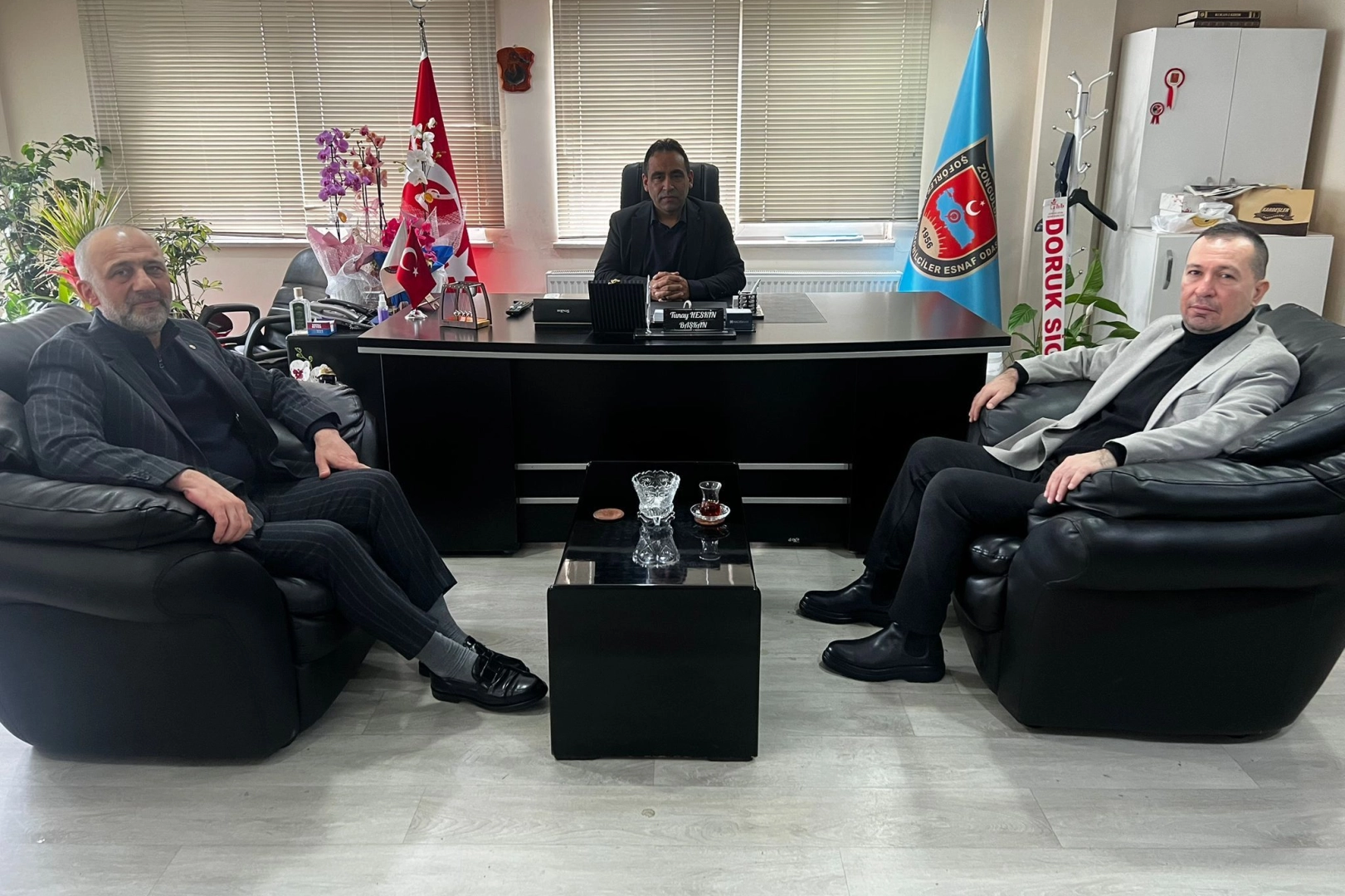 Zonguldak Ticaret ve Sanayi Odası Yönetim Kurulu Başkanı Metin Demir, Yönetim Kurulu üyesi Hamdi Öztürk ile birlikte; Zonguldak Şoförler ve Otomobilciler Odası Başkanı Tunay Keskin'i ziyaret etti.