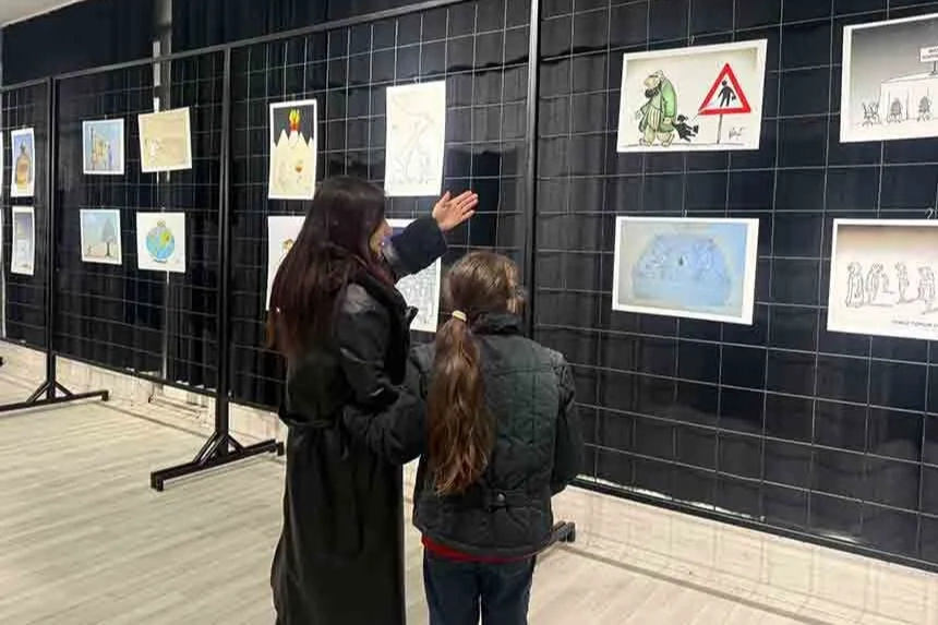 “Üçü Bir Arada” karikatür sergisi, 14 Şubat tarihine kadar Zonguldak Belediye Kültür Merkezi’nde ziyaret edilebilecek.