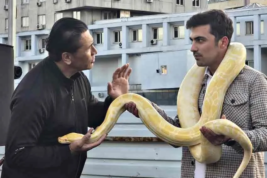 Vatandaşlar yılanla poz vermek için sıraya girerken, fotoğraf çektirdikleri anlarda korku dolu anlar yaşandı. O anları ölümsüzleştirmek isteyen vatandaşlar telefonlarına sarıldı.