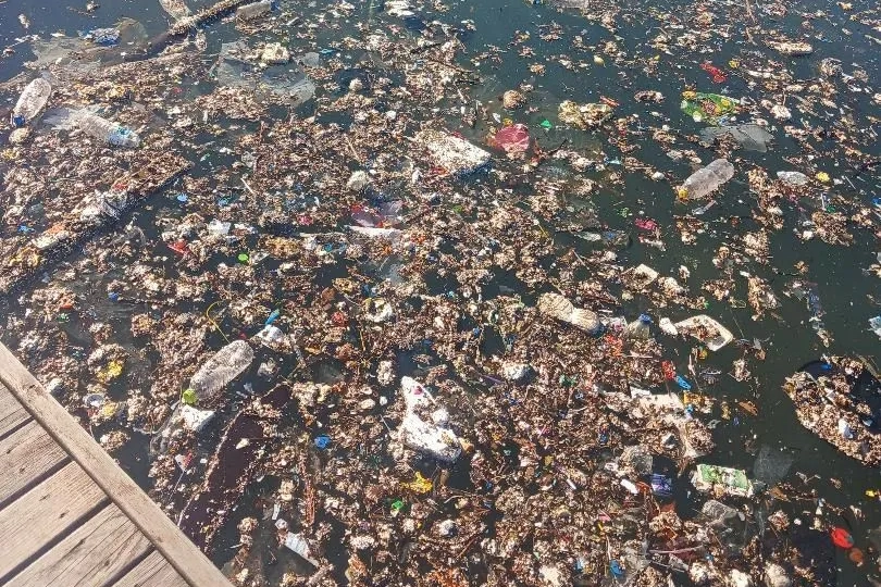 Zonguldak’ta sağanak yağış sonrasında derelerden sürüklenen tahta ve plastik atıklar limanın üzerini kapladı.