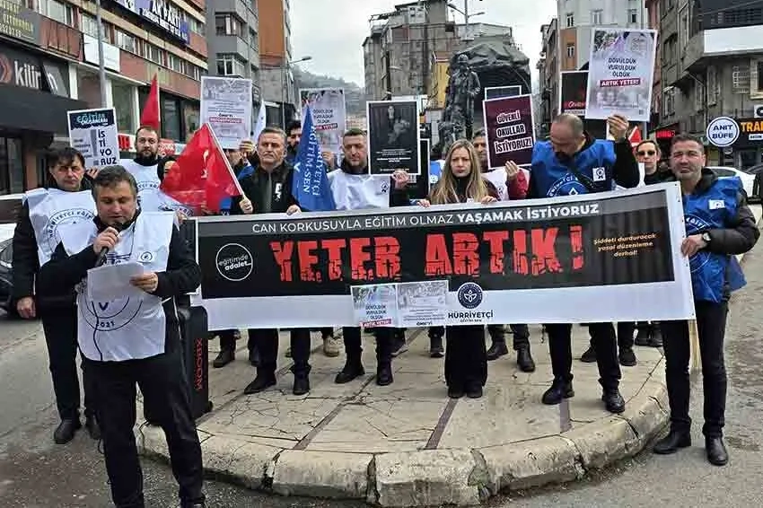 Hürriyetçi Eğitim Sen Zonguldak Şubesi, İstanbul’da görev yaptığı okulda uğradığı saldırı sonucu hayatını kaybeden öğretmen için bir günlük iş bırakma eylemi gerçekleştirdi. Eğitim camiasını derinden sarsan olayın ardından sendika üyeleri tepkilerini güçlü bir eylemle ortaya koydu.
