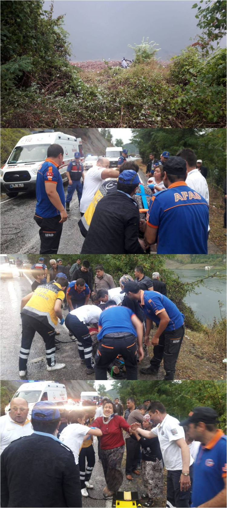 Otomobilin içindeki yaralılar yaklaşık 40 metrelik şarampolden AFAD ve 112 ekiplerinin çalışmasıyla çıkarıldı.