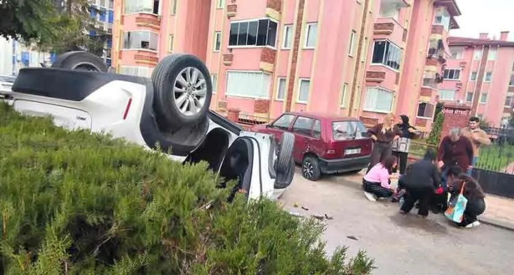 KAZA SONRASI ARAÇ TERS DÖNDÜ