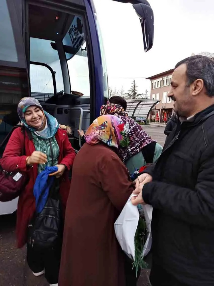 Diyanet İşleri Başkanlığı organizasyonuyla kutsal topraklara giden umre yolcuları, Çaycuma’ya güvenli bir şekilde döndü. Çaycuma İlçe Müftü Vekili Erdal Saraç, umrecileri güllerle karşıladı ve umrelerinin kabul olmasını diledi.