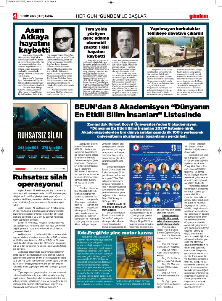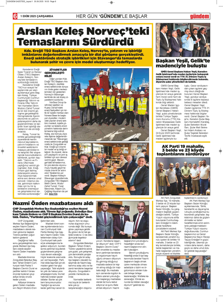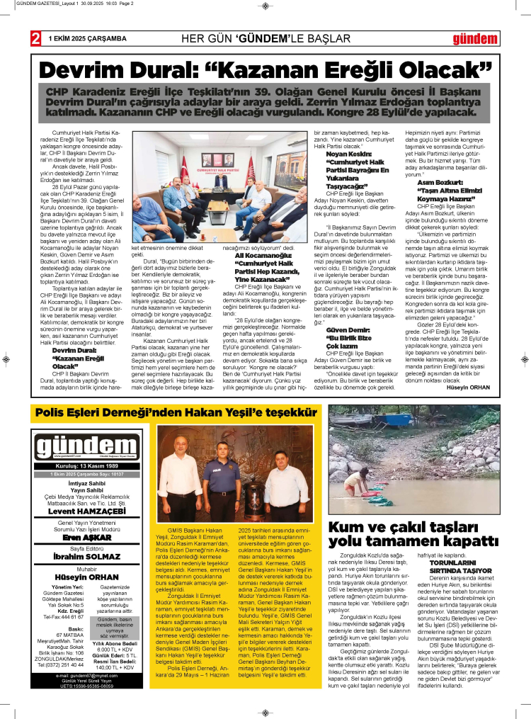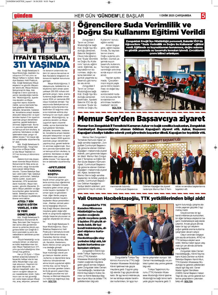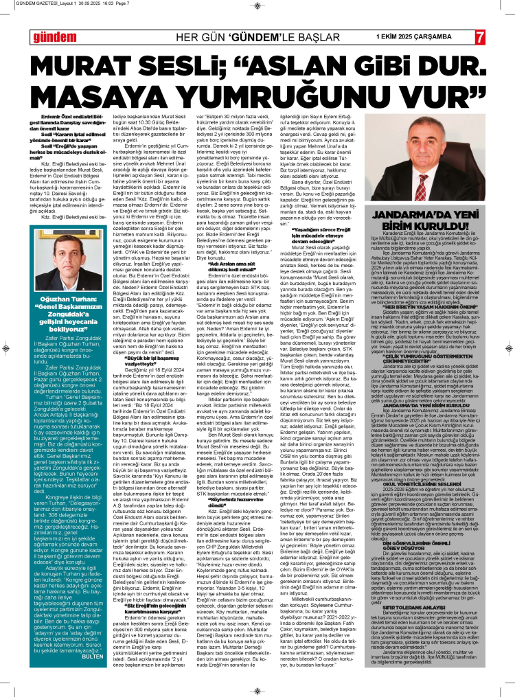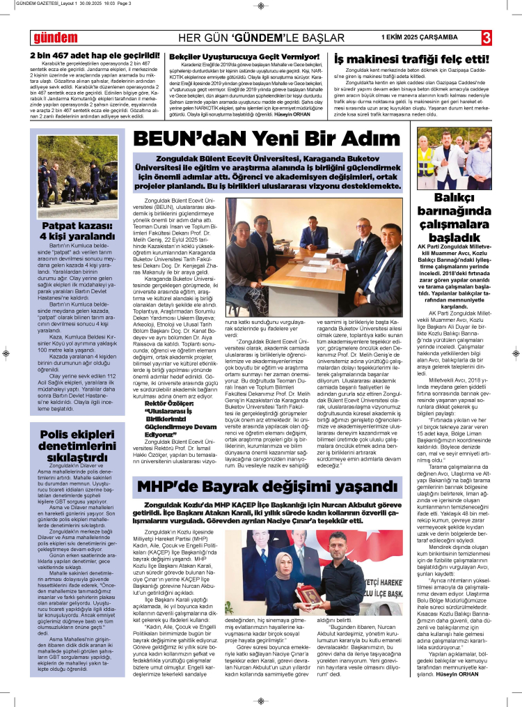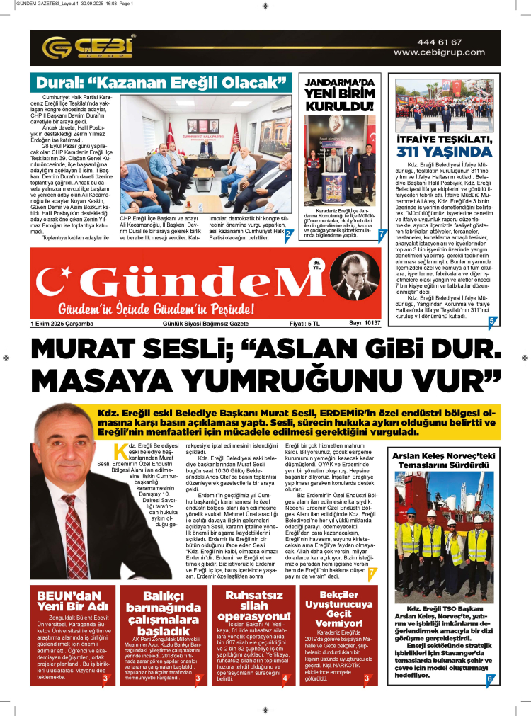 1 EKİM 2025 ÇARŞAMBA GÜNDEM GAZETESİ