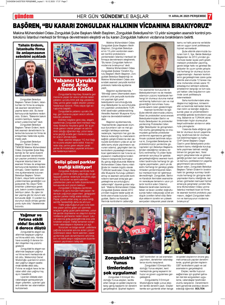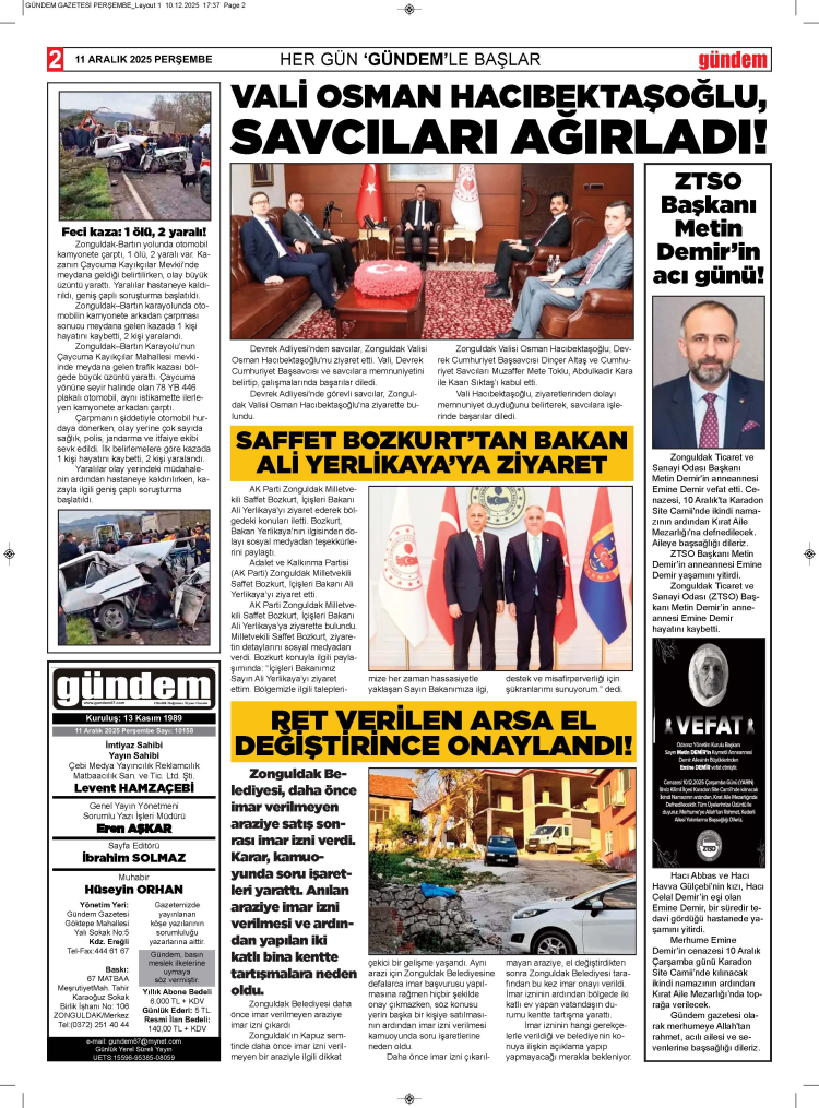 11 ARALIK 2025 PERŞEMBE GÜNDEM GAZETESİ