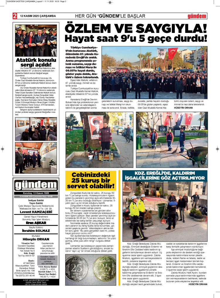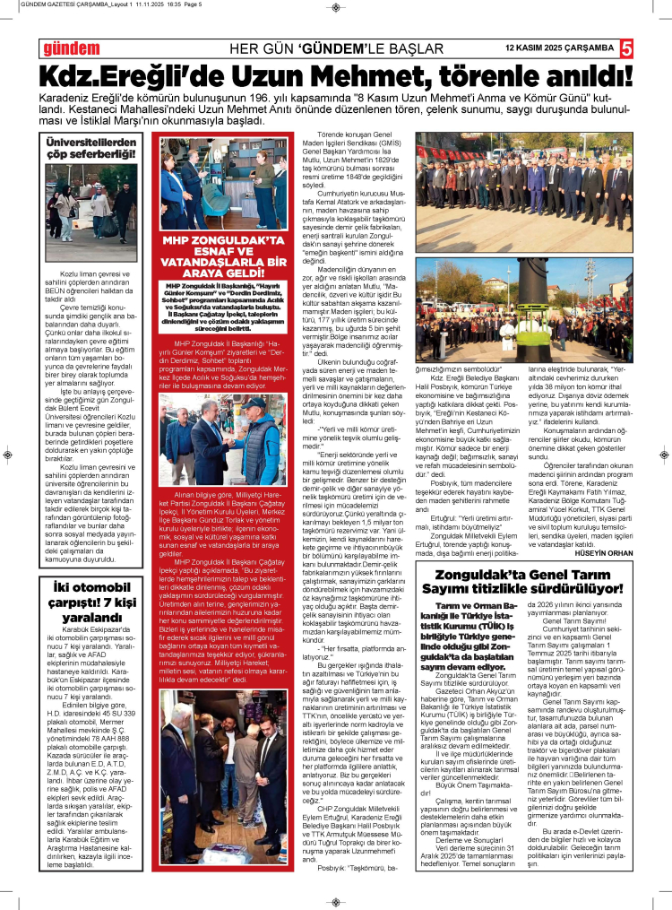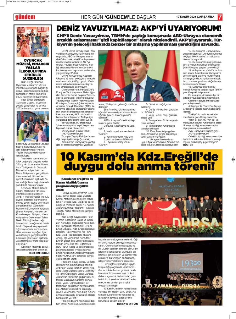 12 KASIM 2025 ÇARŞAMBA GÜNDEM GAZETESİ