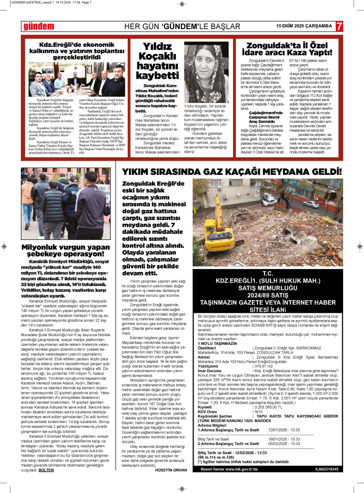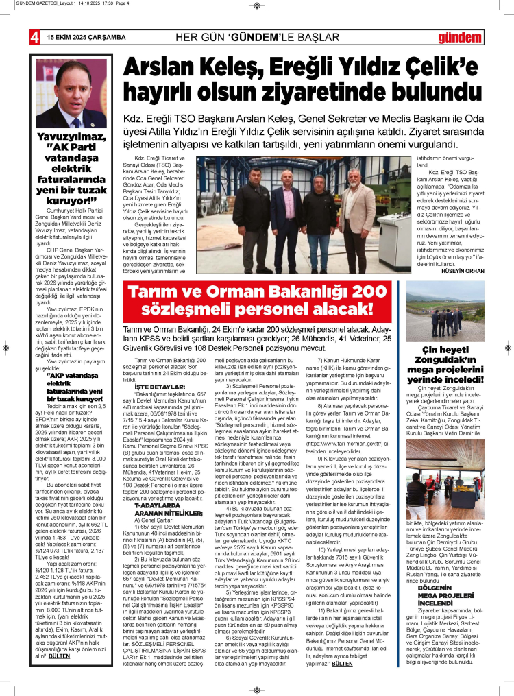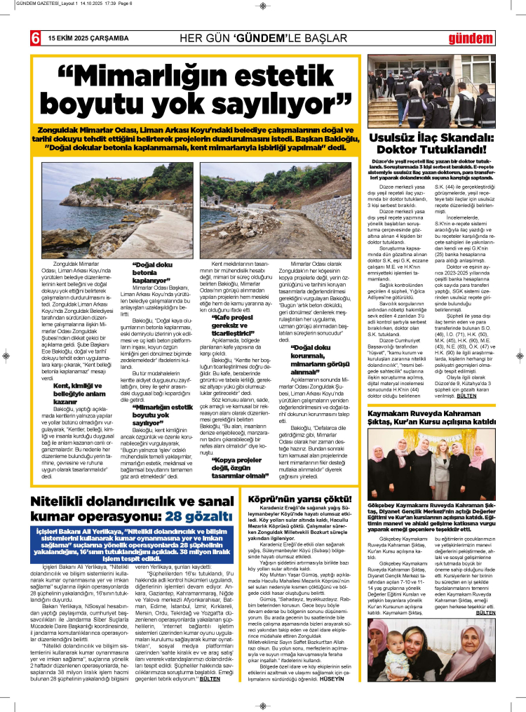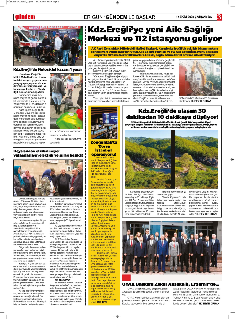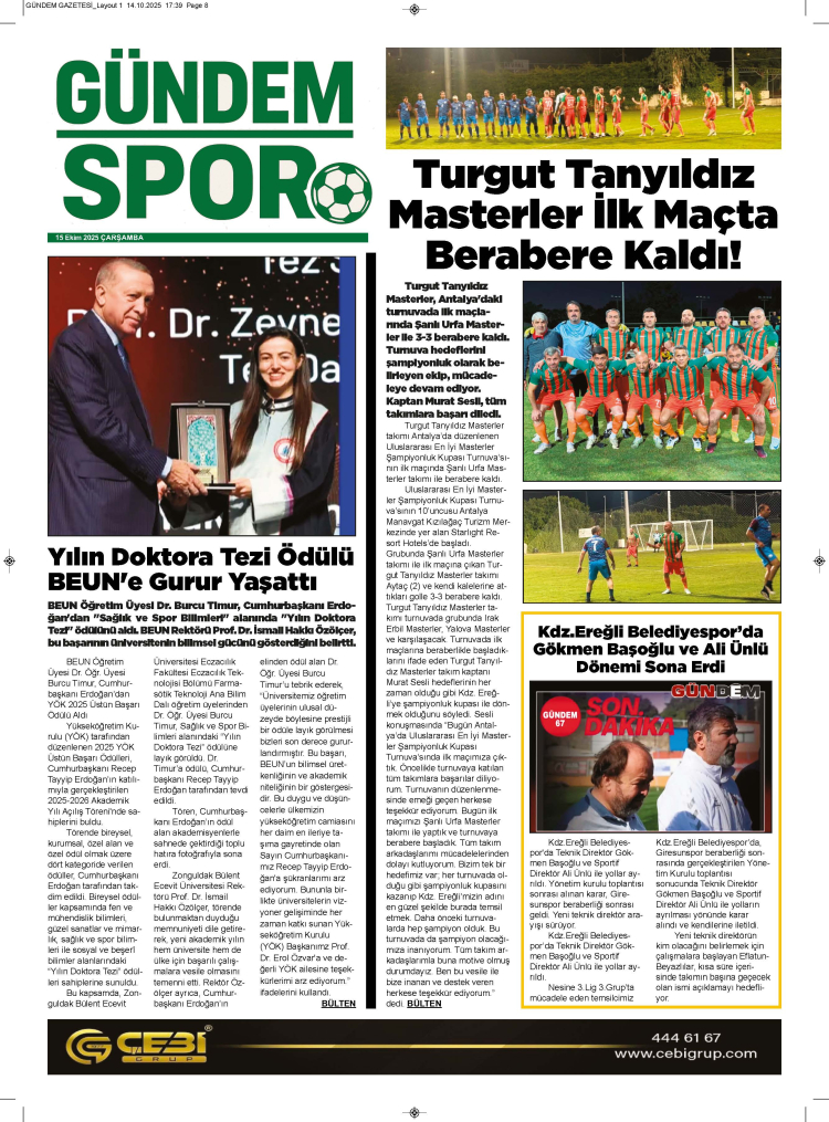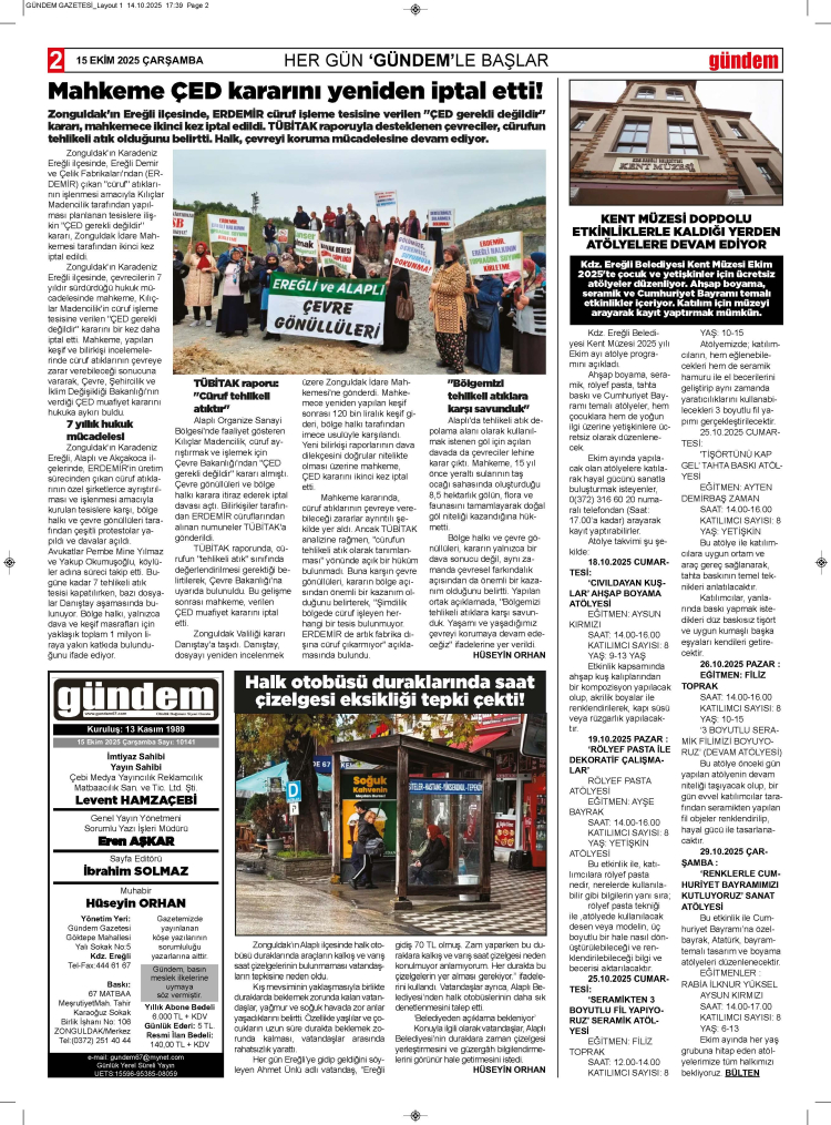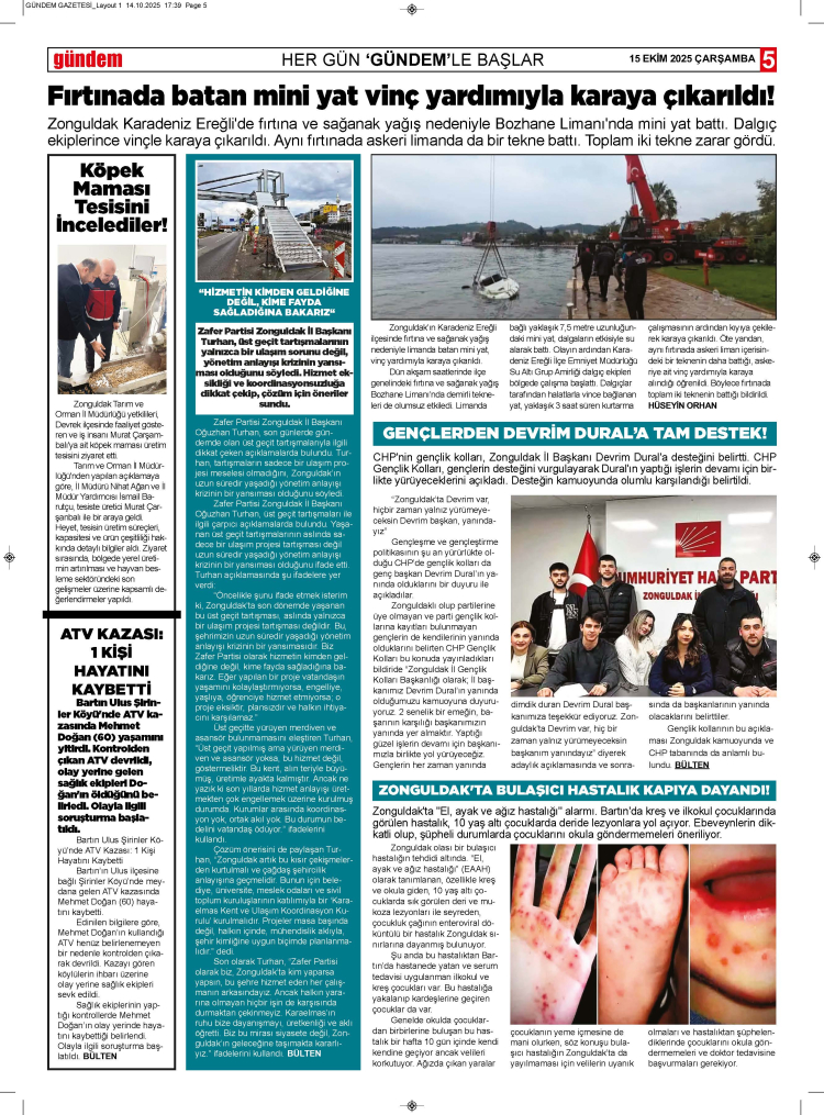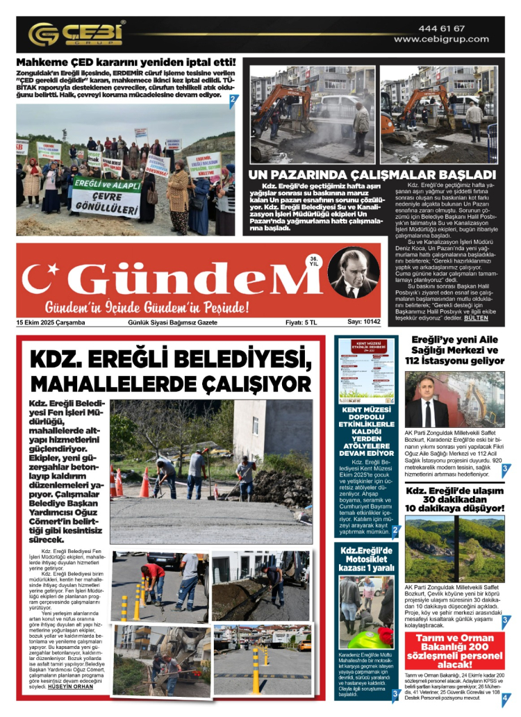 15 EKİM 2025 ÇARŞAMBA GÜNDEM GAZETESİ