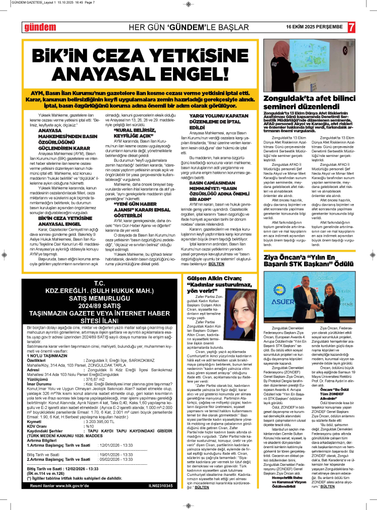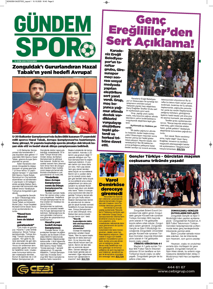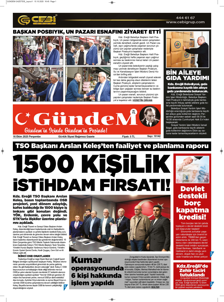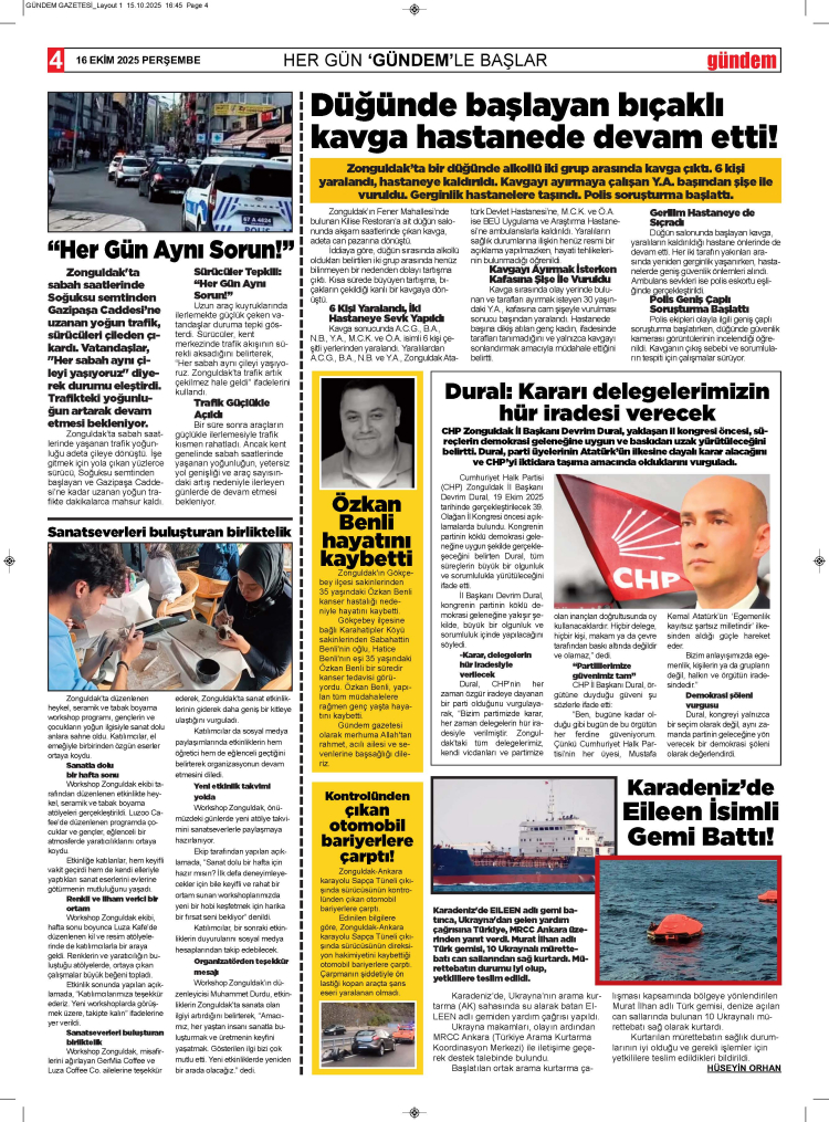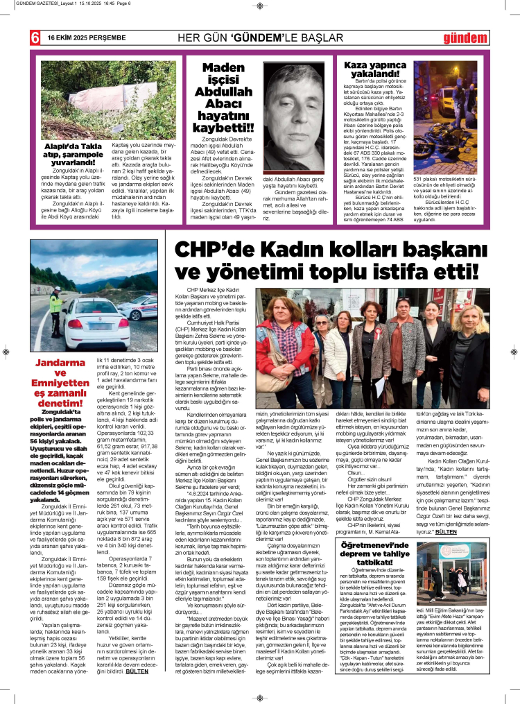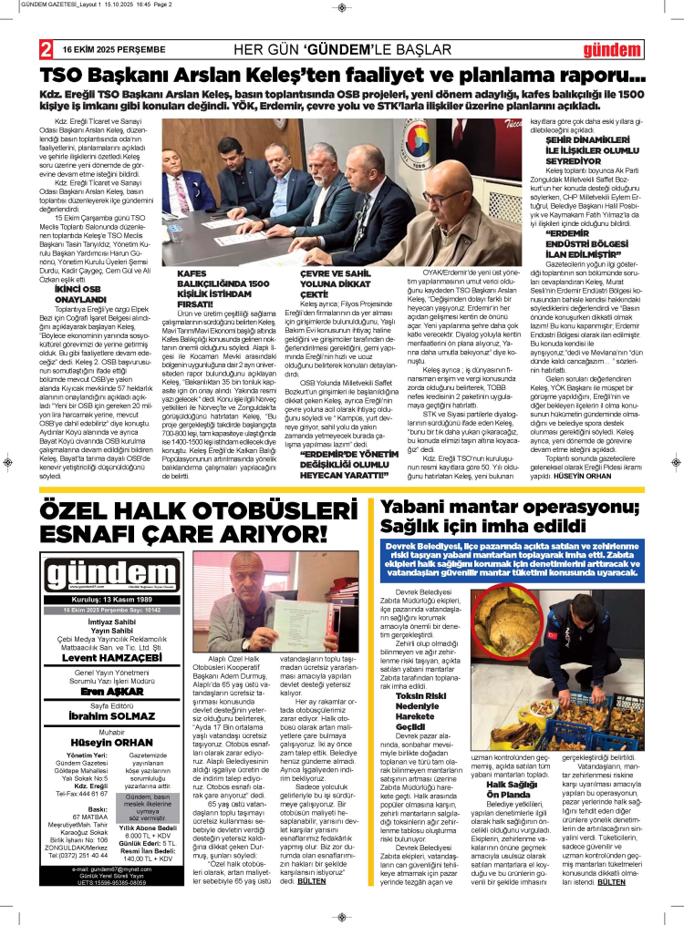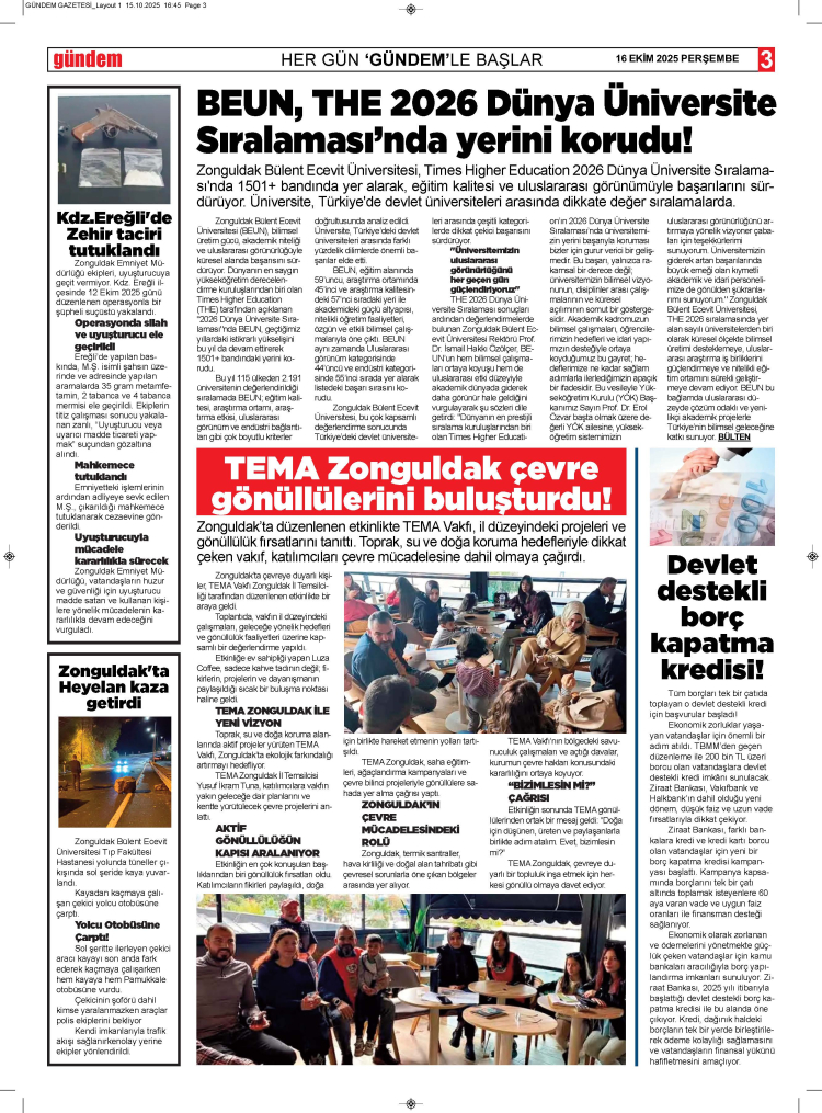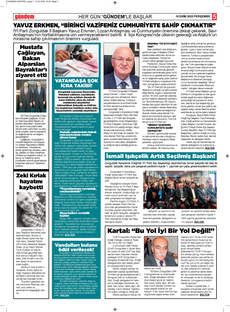 16 EKİM 2025 PERŞEMBE GÜNDEM GAZETESİ