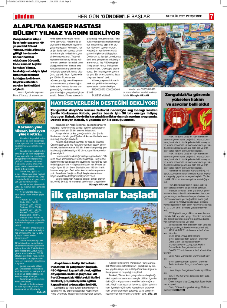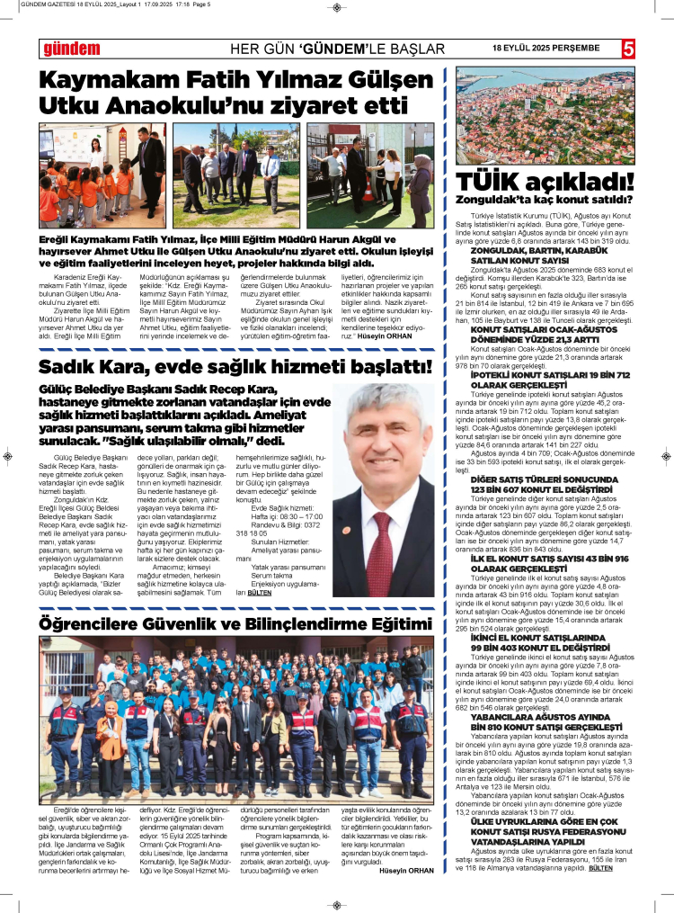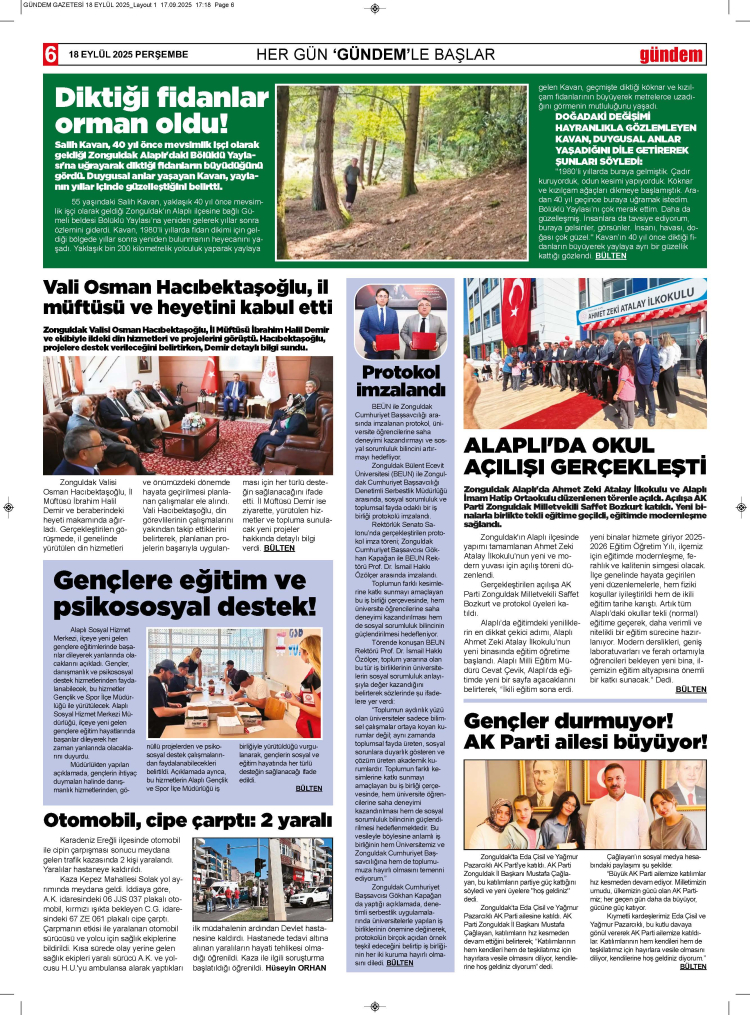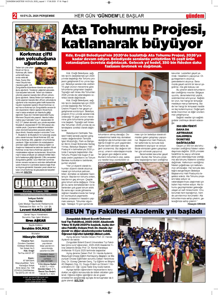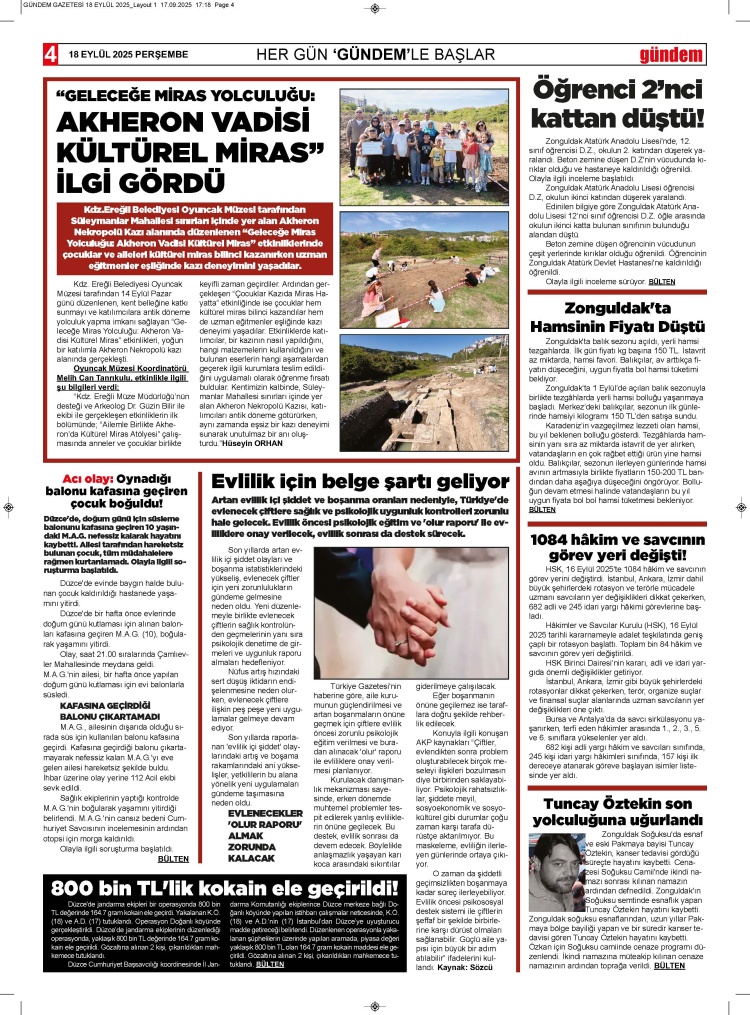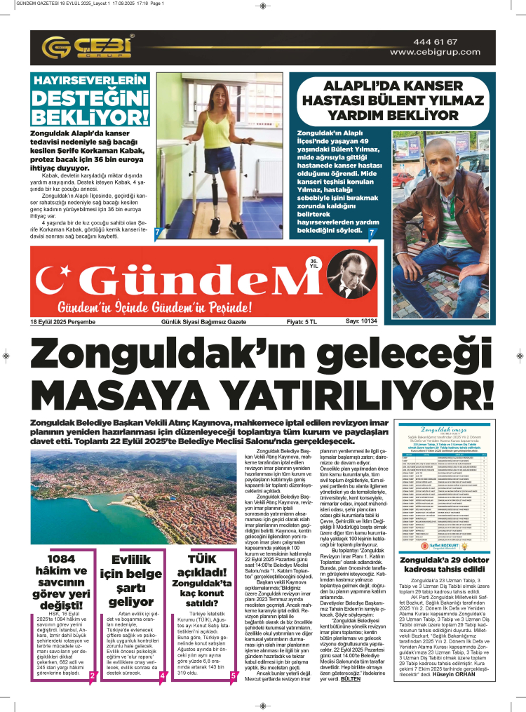 18 EYLÜL 2025 PERŞEMBE GÜNDEM GAZETESİ