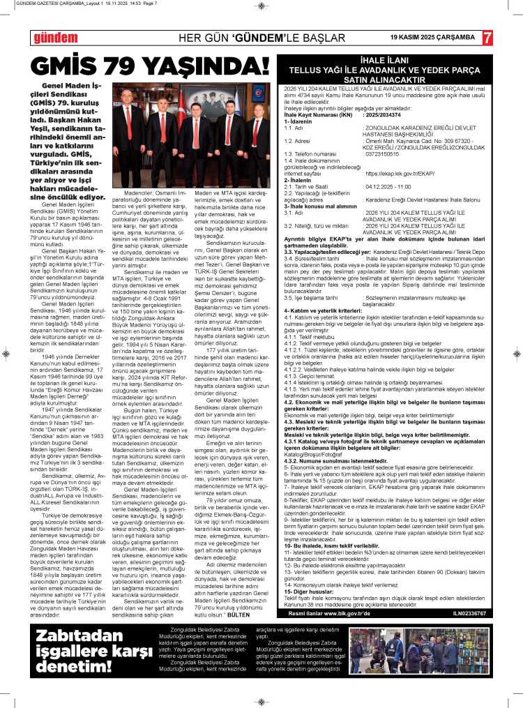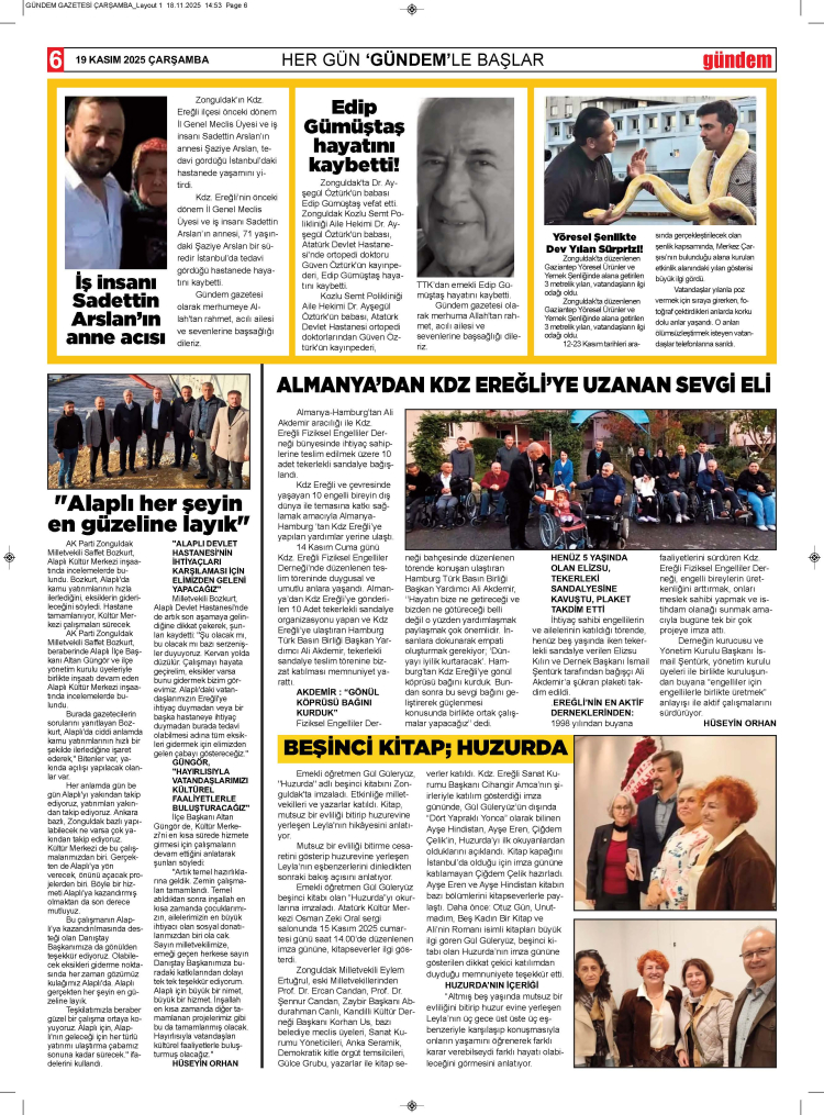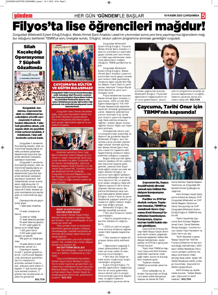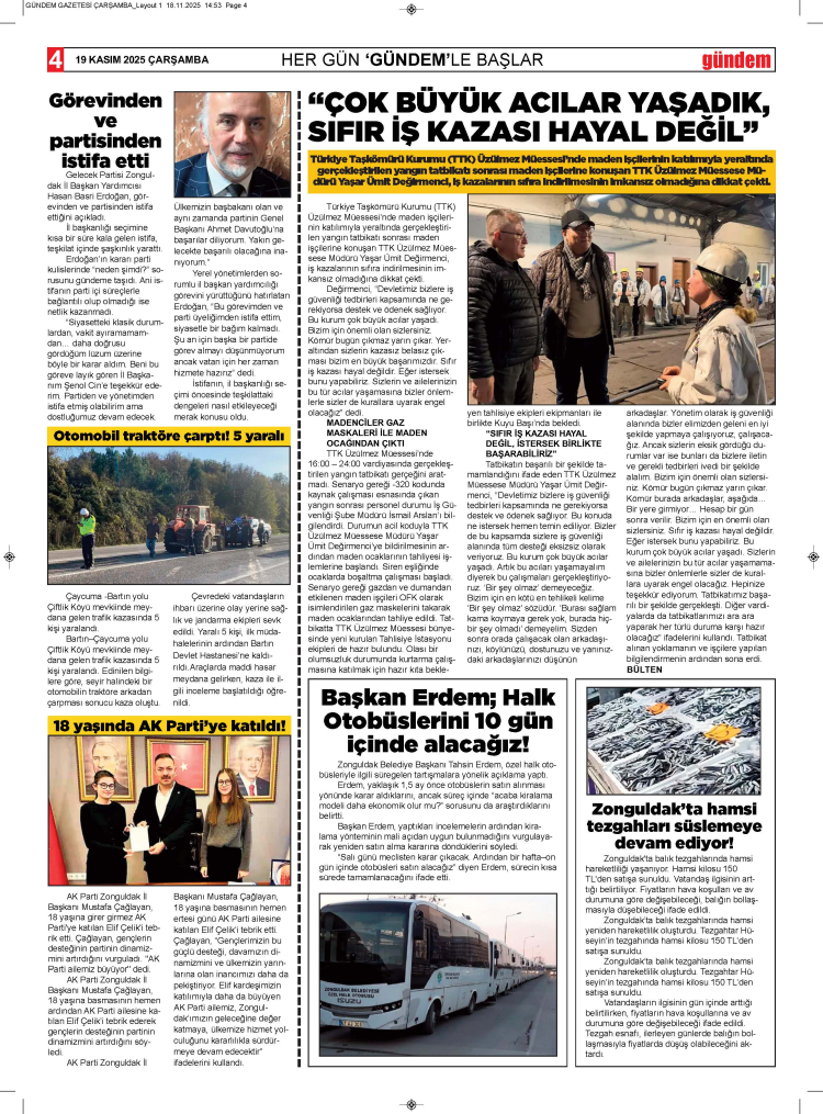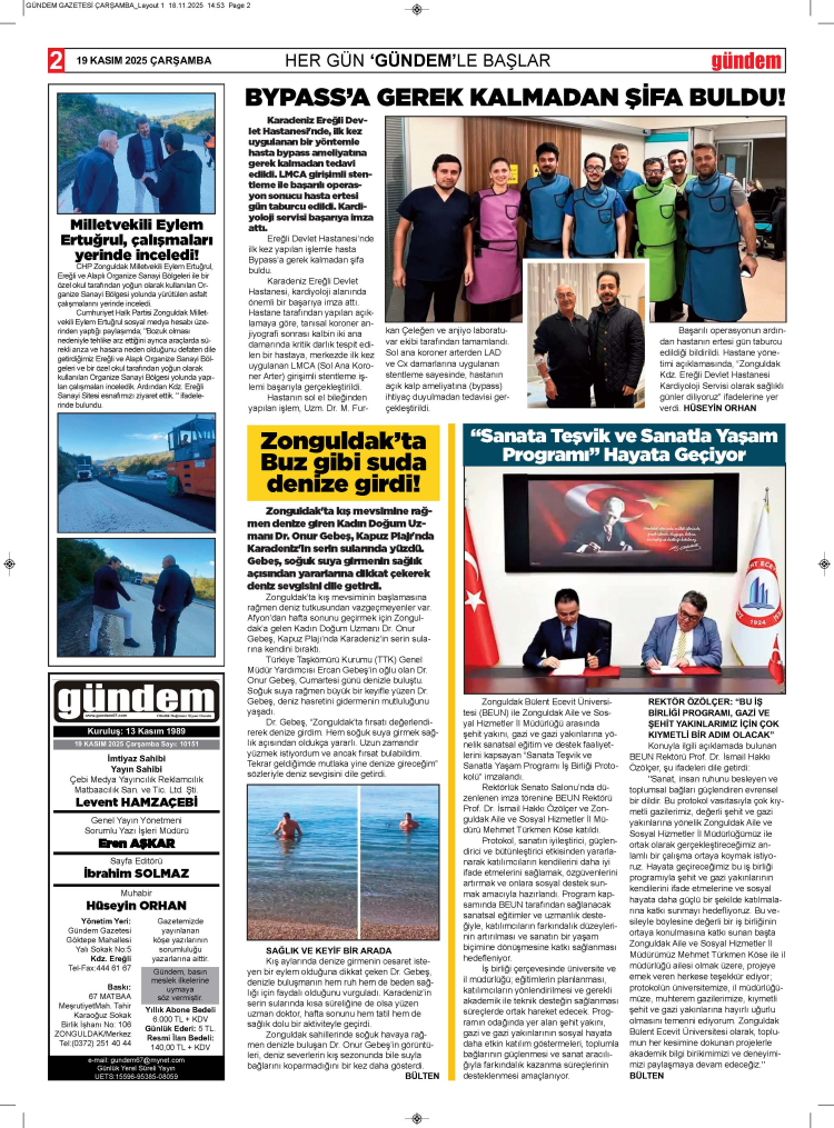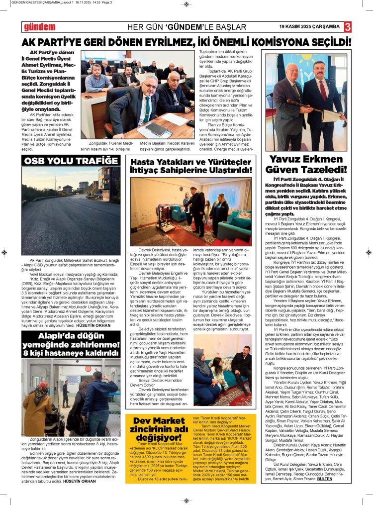 19 KASIM 2025 ÇARŞAMBA GÜNDEM GAZETESİ