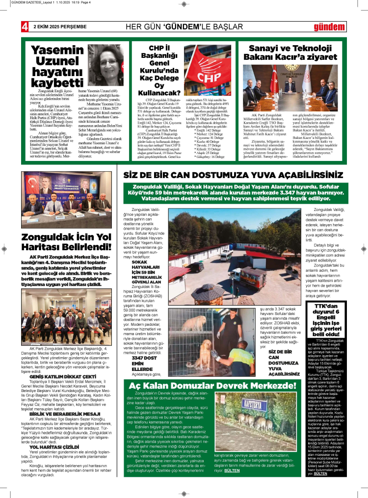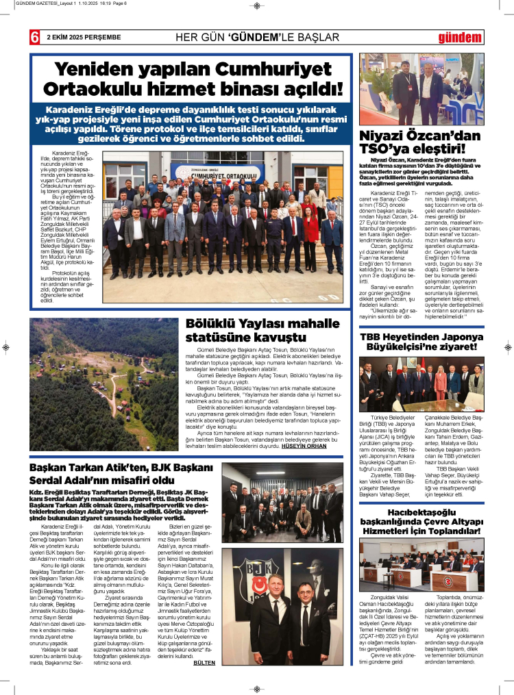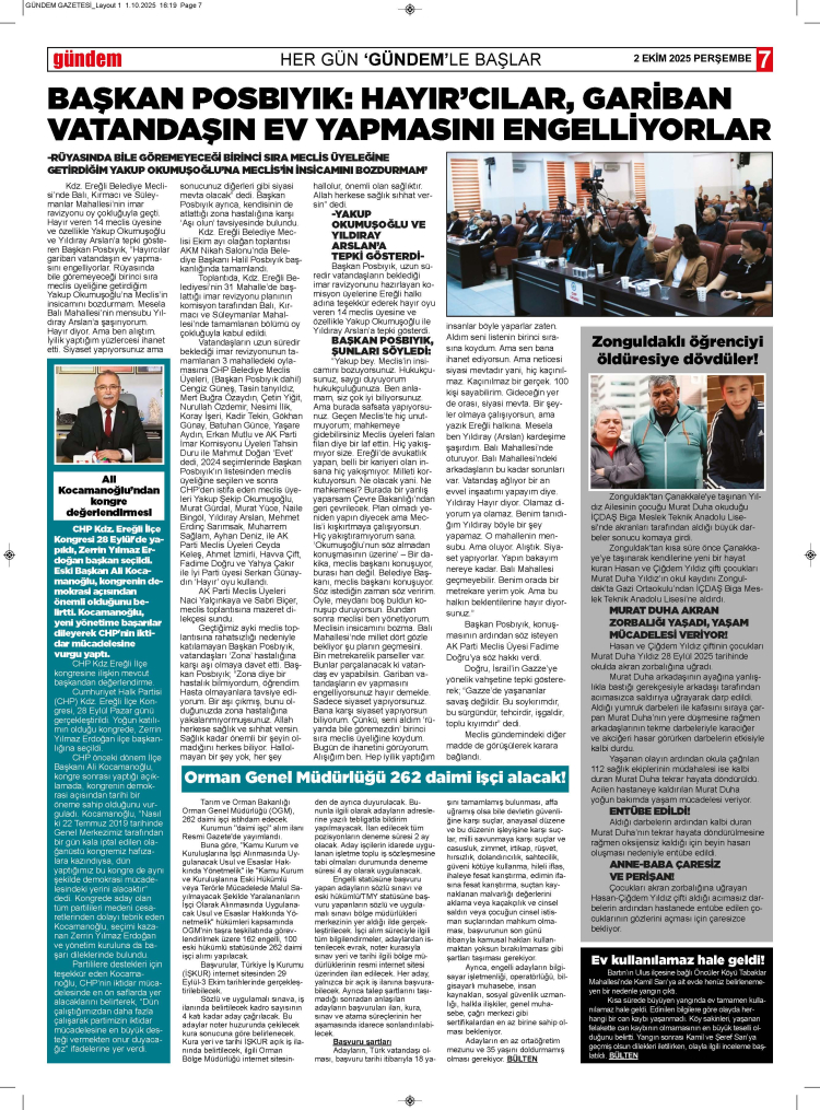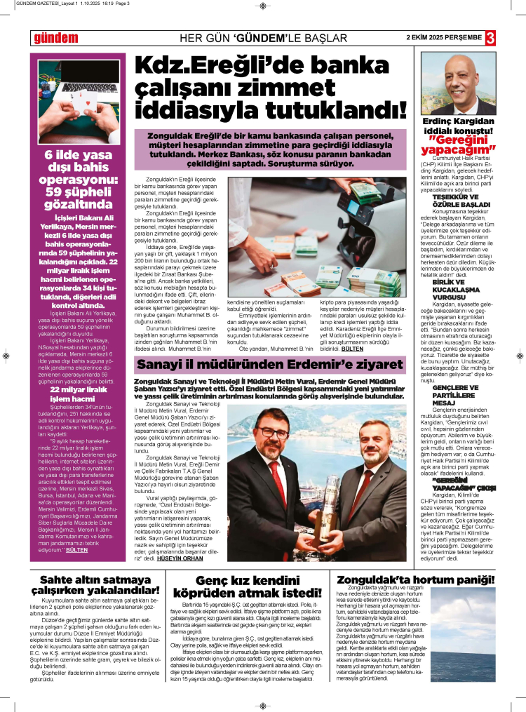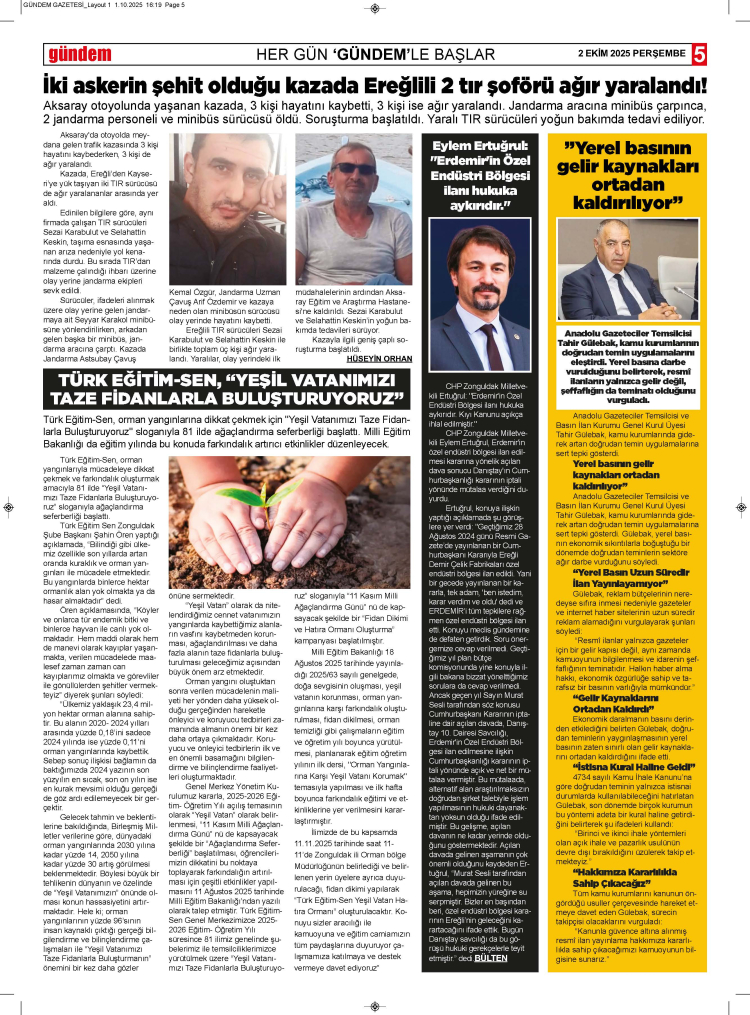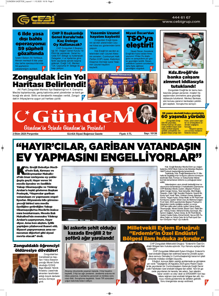 2 EKİM 2025 PERŞEMBE GÜNDEM GAZETESİ
