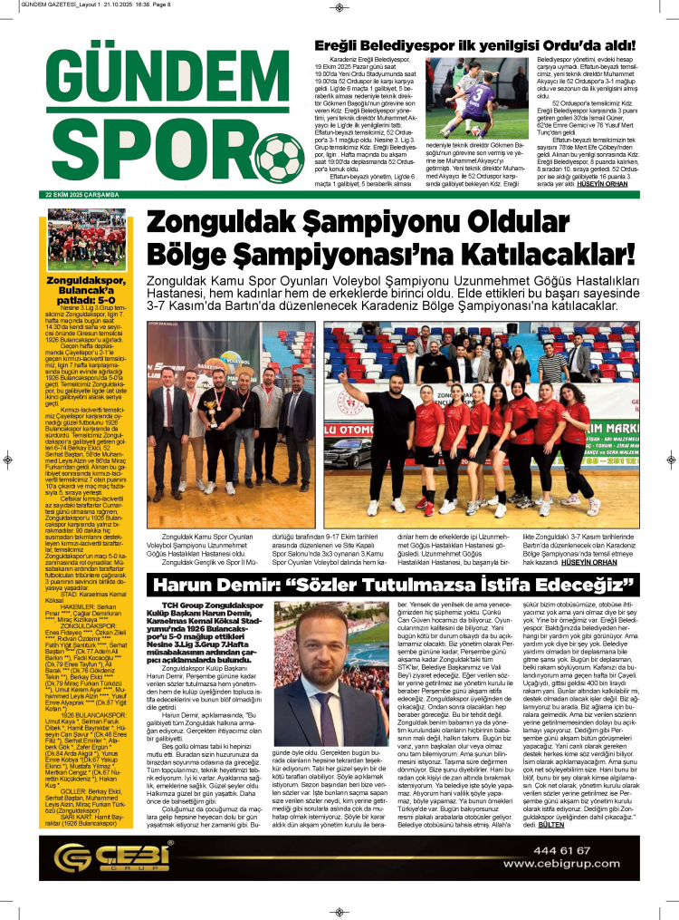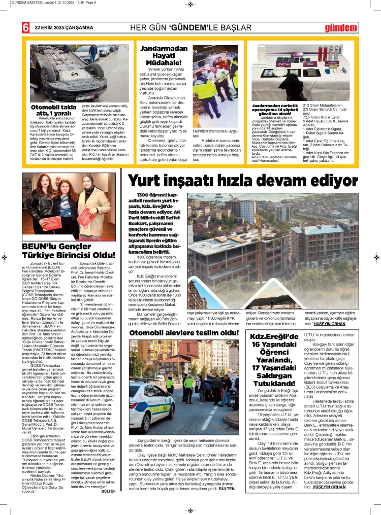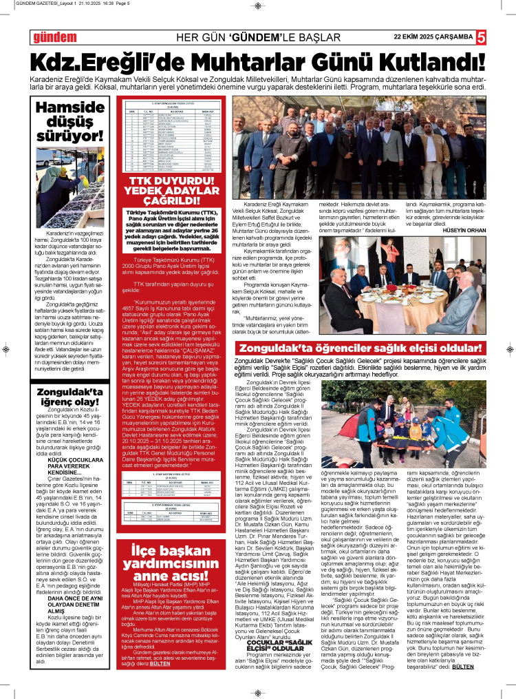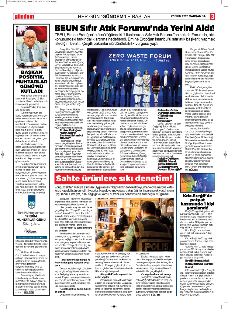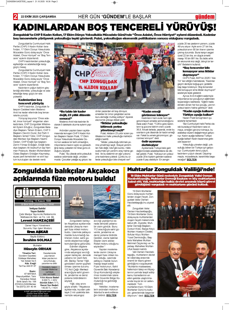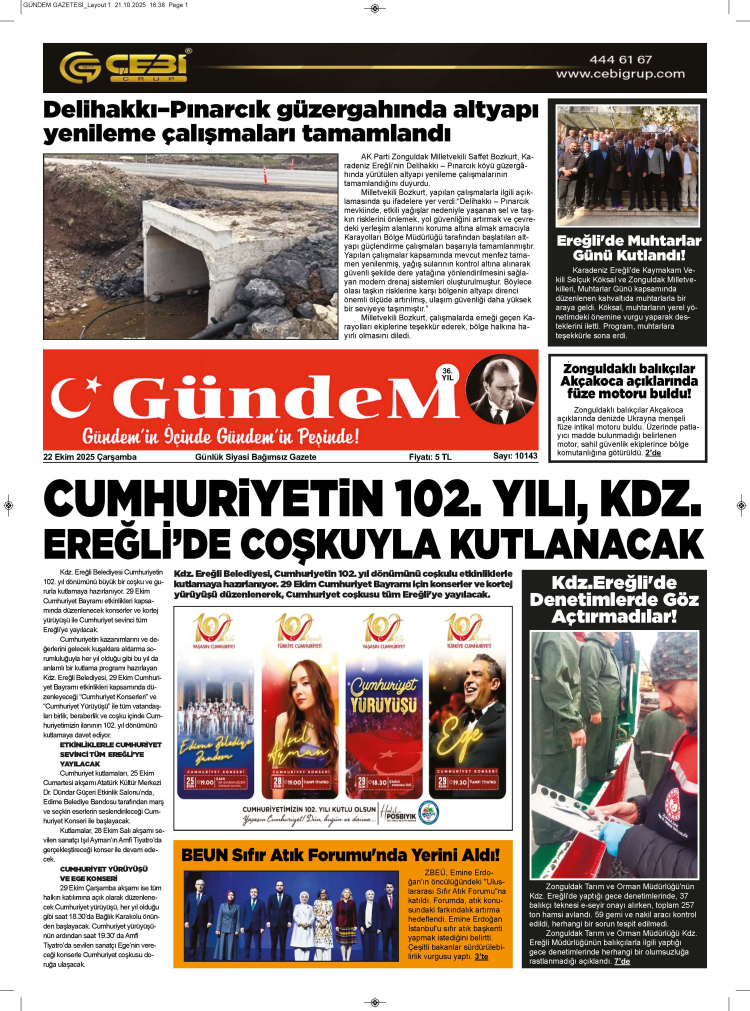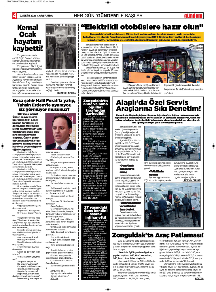 22 EKİM 2025 ÇARŞAMBA GÜNDEM GAZETESİ