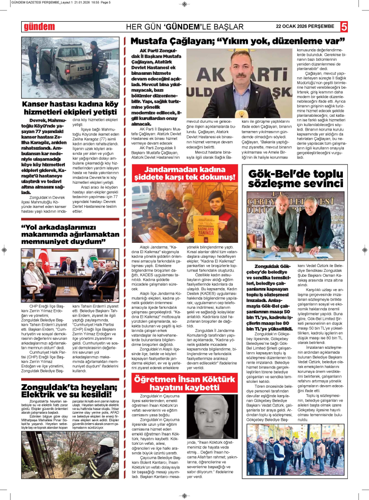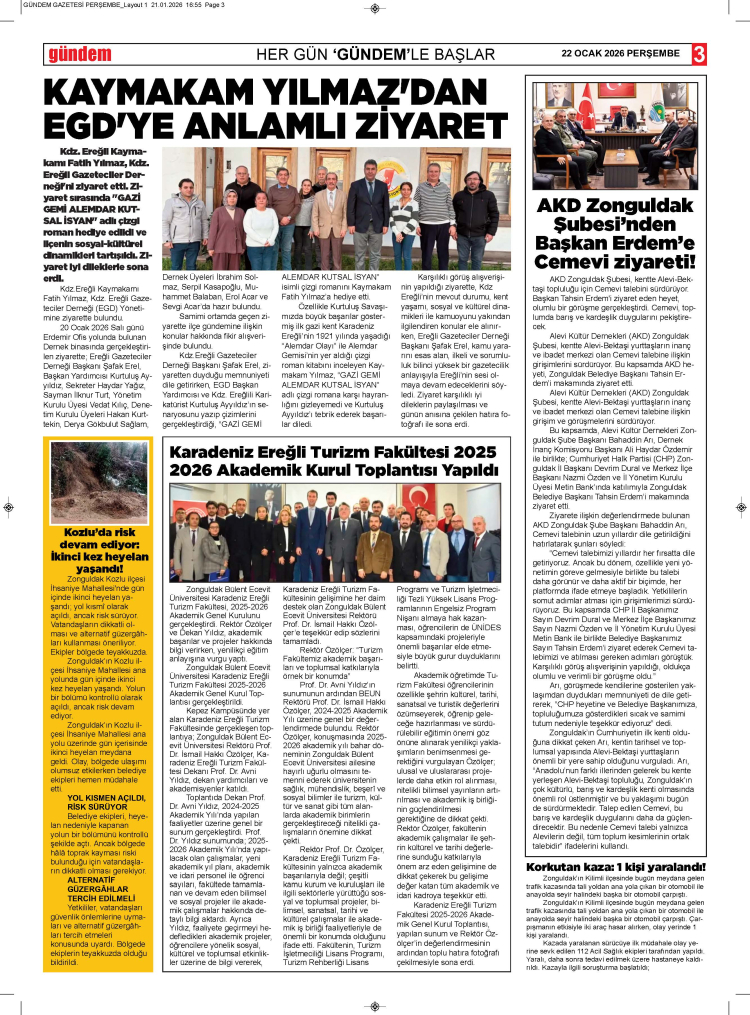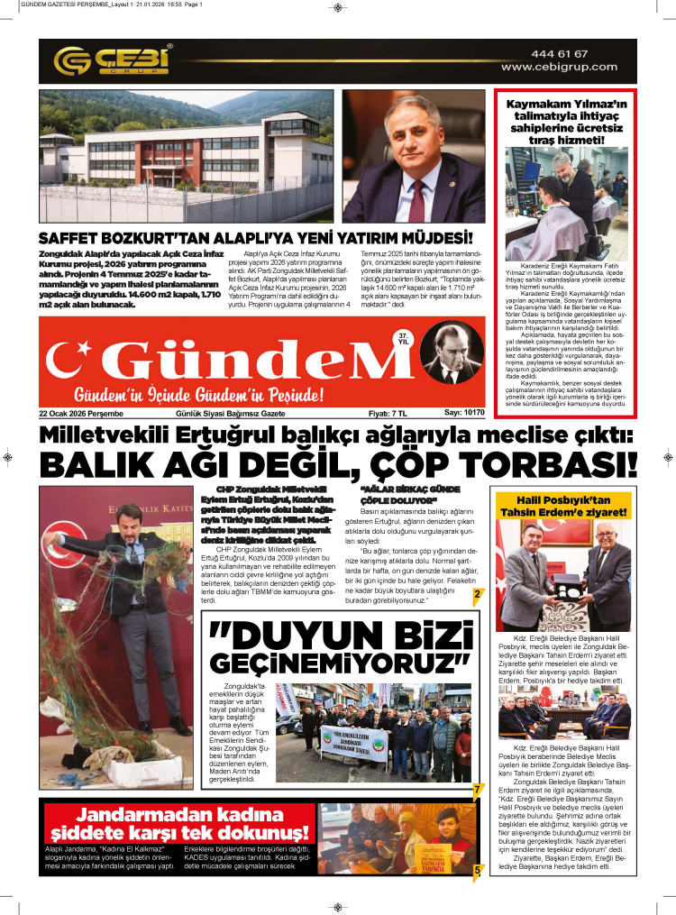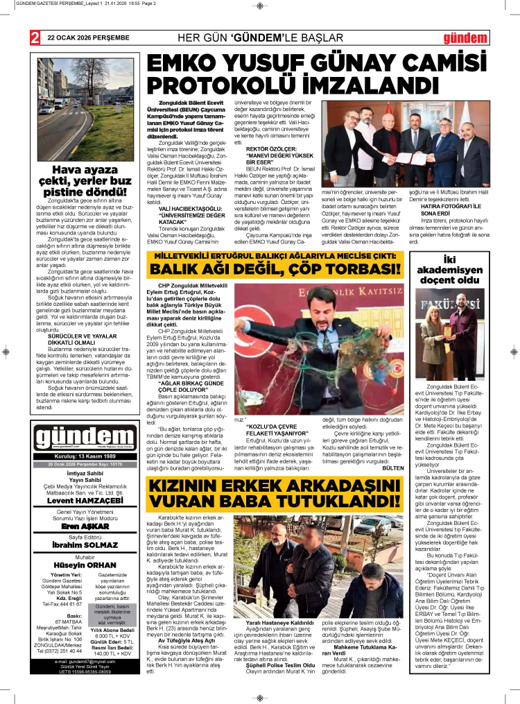 22 OCAK 2026 PERŞEMBE GÜNDEM GAZETESİ
