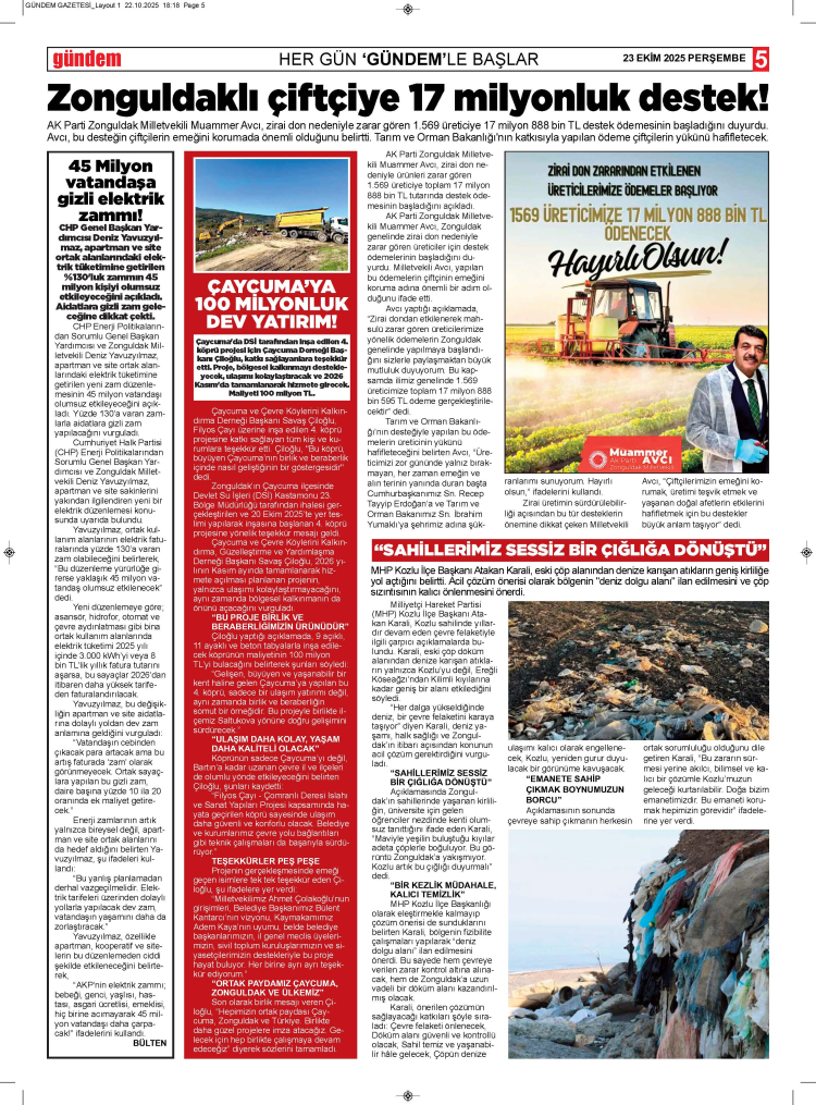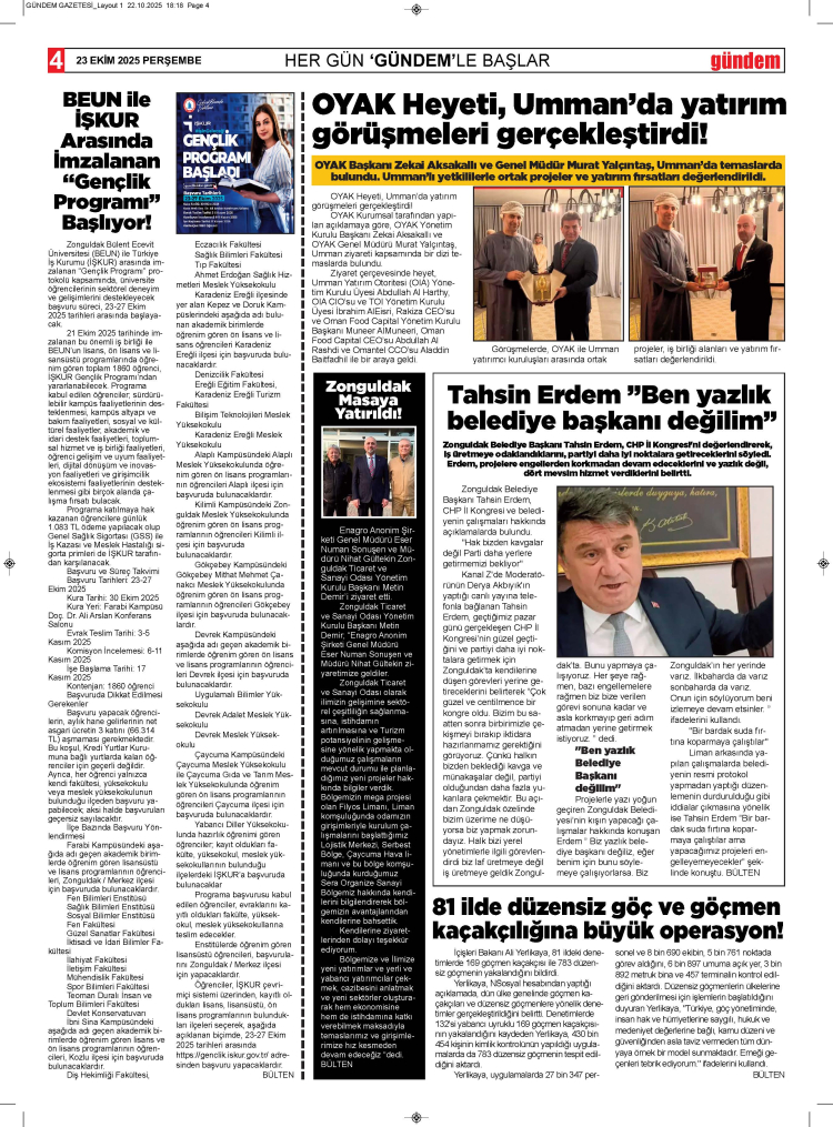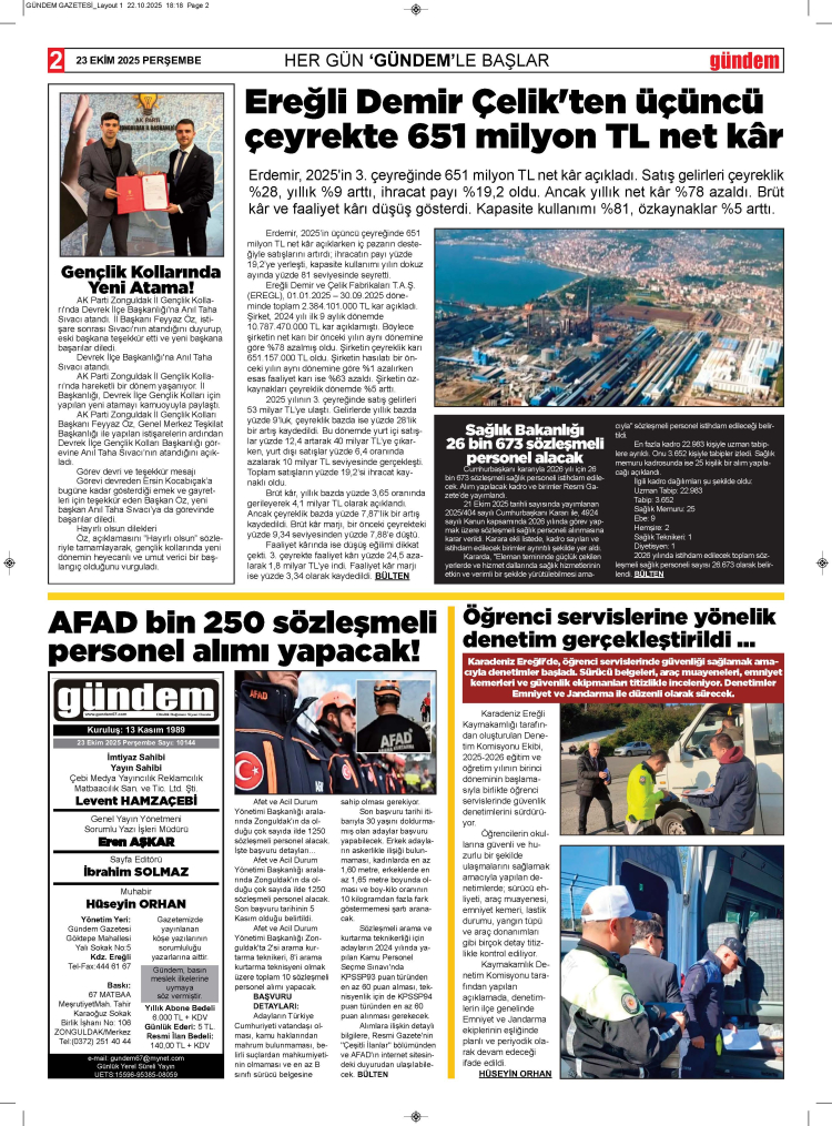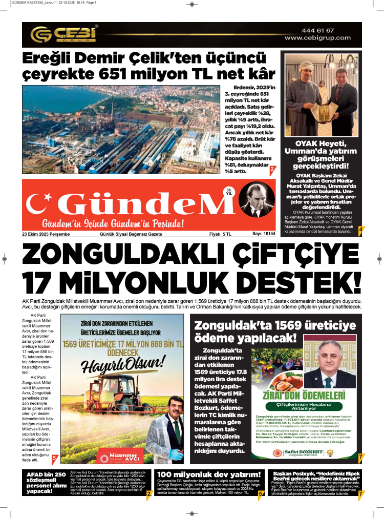 23 EKİM 2025 PERŞEMBE GÜNDEM GAZETESİ