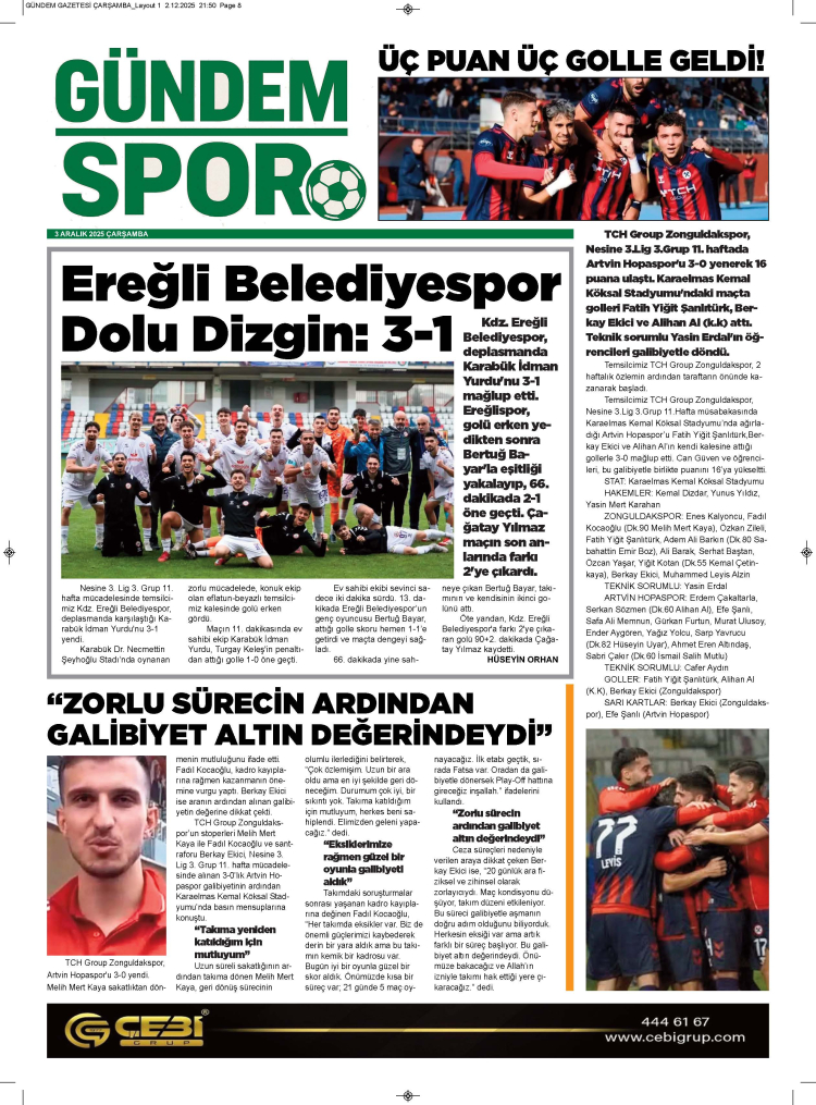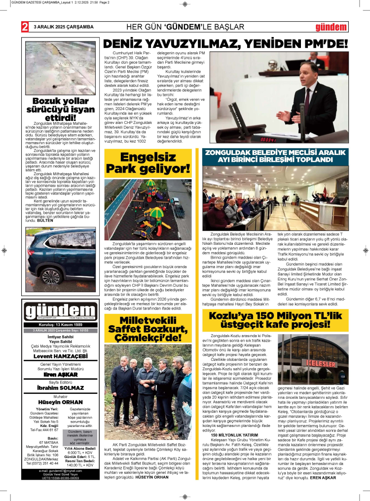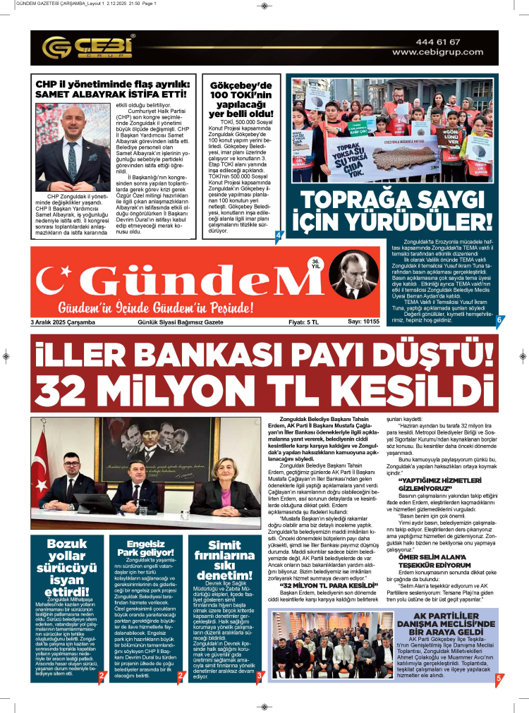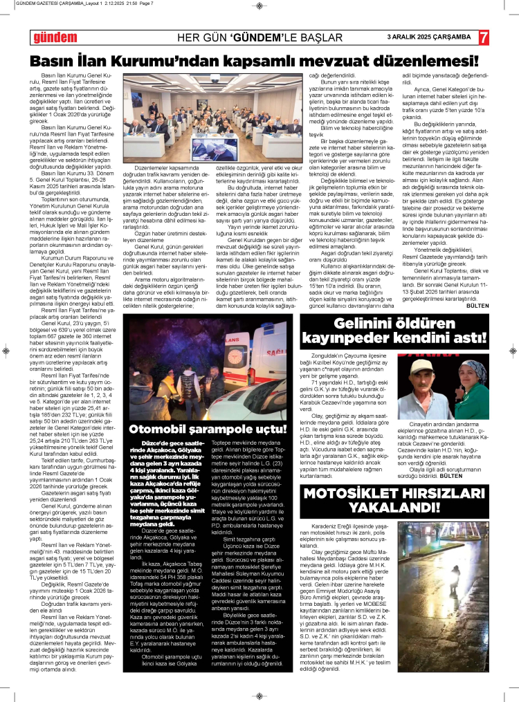 3 ARALIK 2025 ÇARŞAMBA GÜNDEM GAZETESİ