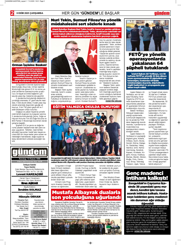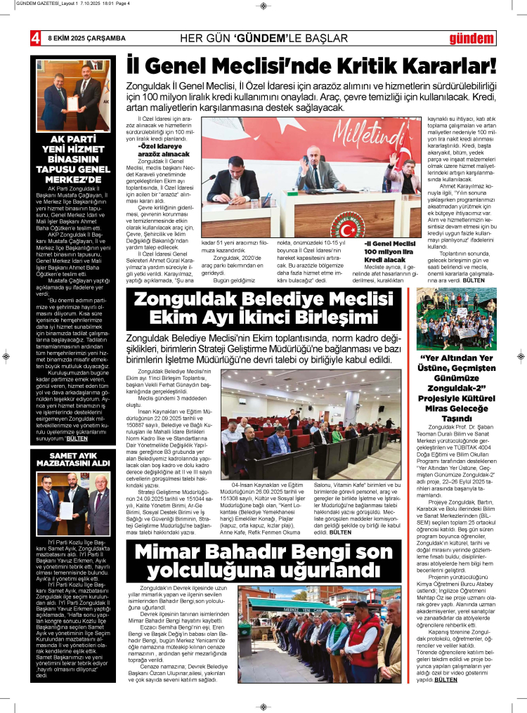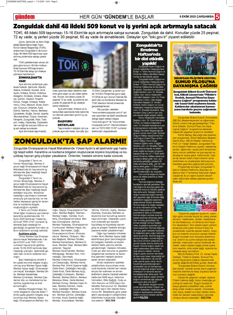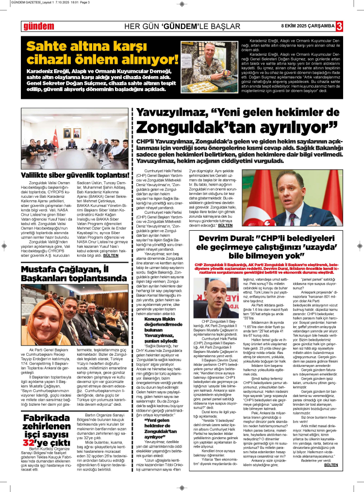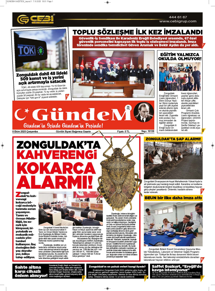 8 EKİM 2025 ÇARŞAMBA GÜNDEM GAZETESİ
