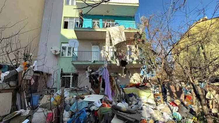 Odalar içinde biriken çöplerin kullanım alanlarını tamamen kapladığı, hijyen şartlarının ortadan kalktığı belirlendi. Evin bahçesi ve bina çevresinin de çöplerle kaplı olduğu görüldü.