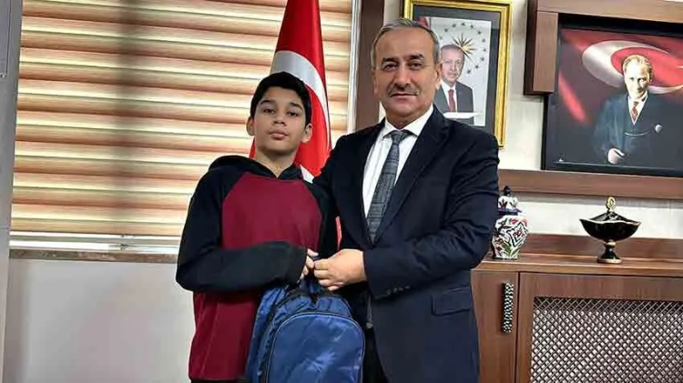 Karabük'te okula giderken İstiklal Marşı'nın okunduğunu duyan ve kar yağışı altında saygı duruşuna geçerek marşa eşlik eden öğrenci, örnek davranışı dolayısıyla İl Milli Eğitim Müdürü Nevzat Akbaş tarafından ödüllendirildi.